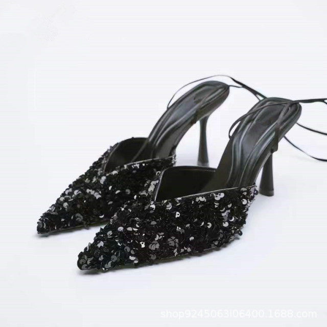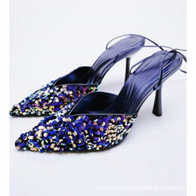 High Heels Stiletto Navy Blue Pumps Sandals Ladies