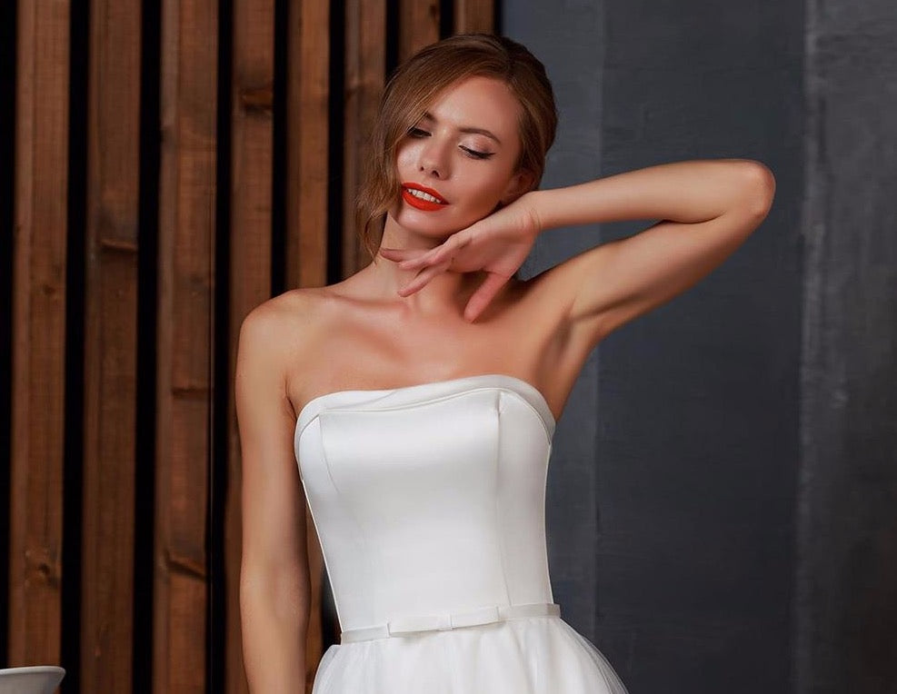 High Low Simple Wedding Dresses Elegant Robe Mariage Femme Strapless Neck Lace Up None Train Bow White Bridal Gowns Matrimonio