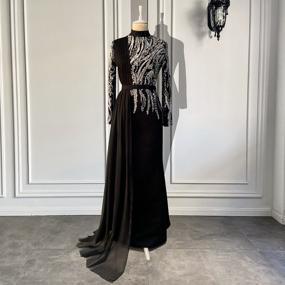 High Neck Luxury Beaded Crystals Women Formal Party Gowns