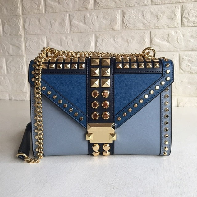 High Quality Genuine Leather Luxury Rivet Handbags Women Bags Designer Famous Brand Chain Crossbody Shoulder Bag Messenger Bags