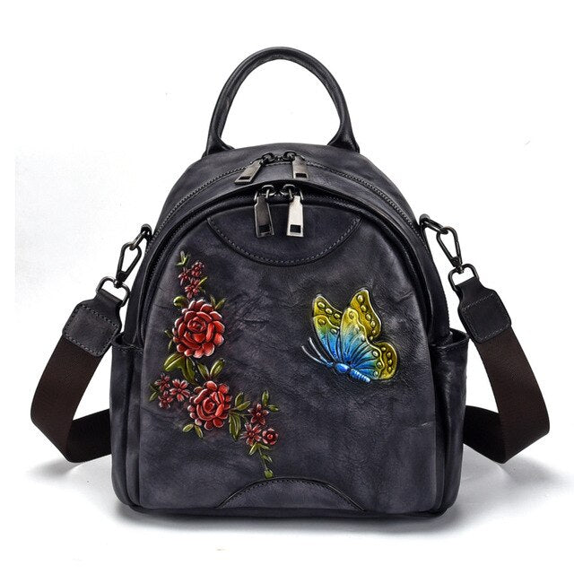 High Quality Genuine Leather Women Backpack Single Shoulder Bag Embossing Knapsack Travel Bag National Skin Daypack Rucksack