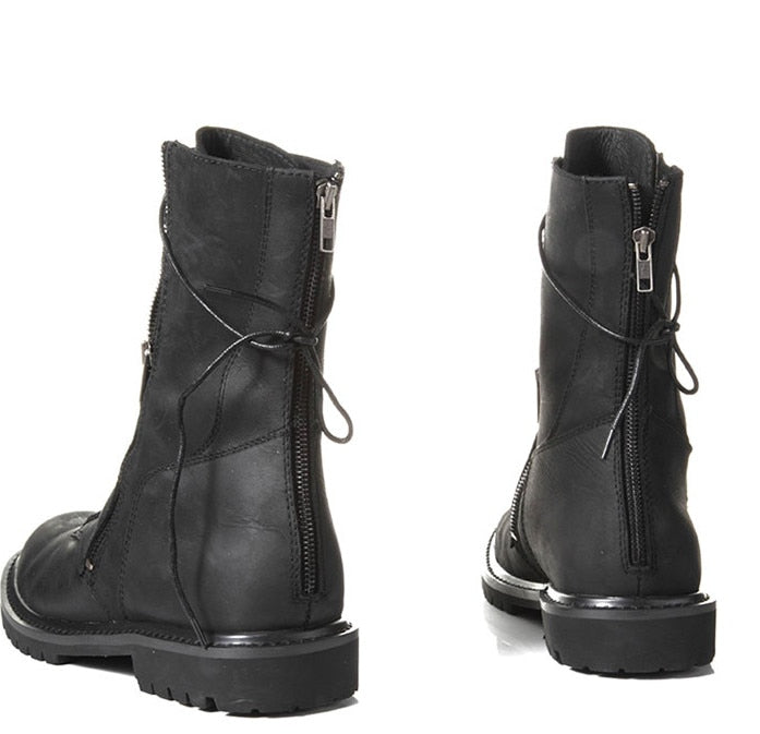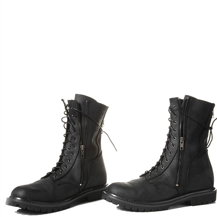 High quality lace up zipper motorcycle high men boots safety Military black wedge fashion western knight Boots