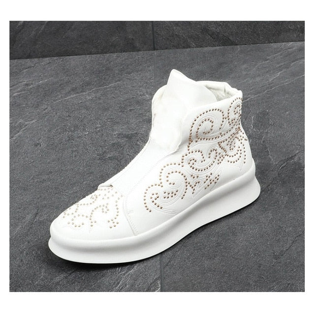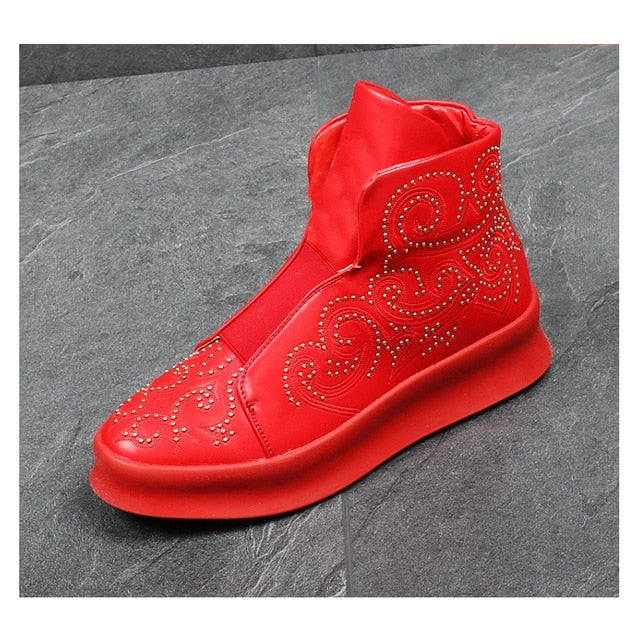 Hip Hop Travel Sneakers Red Thick Bottom Flat Platform Sewing Totem High Top Men Shoes Party Dress Rivet Loafers Botas Hombre