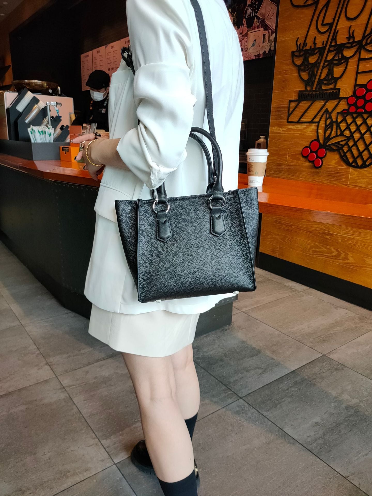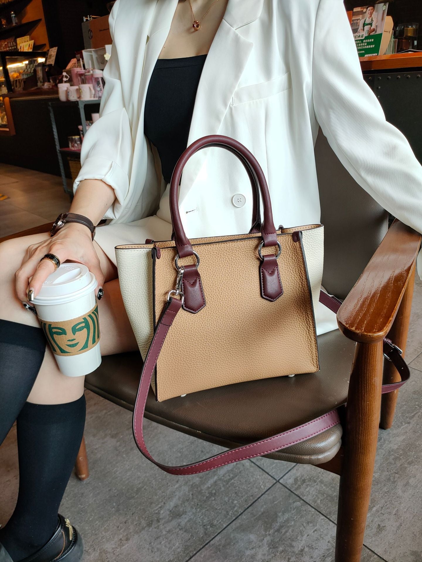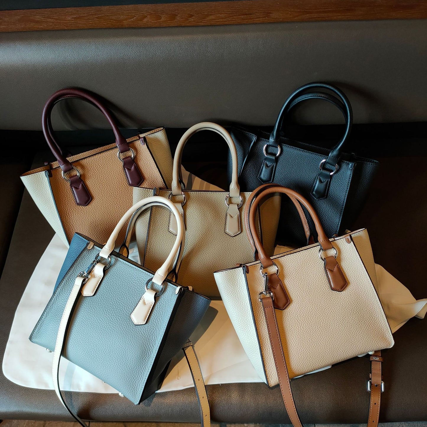 Hit Color Blue Large Office Girl Trapeze Tote Thick Cowhide Leather Women's Handbag High-end Variable Shape Female Shoulder Bag