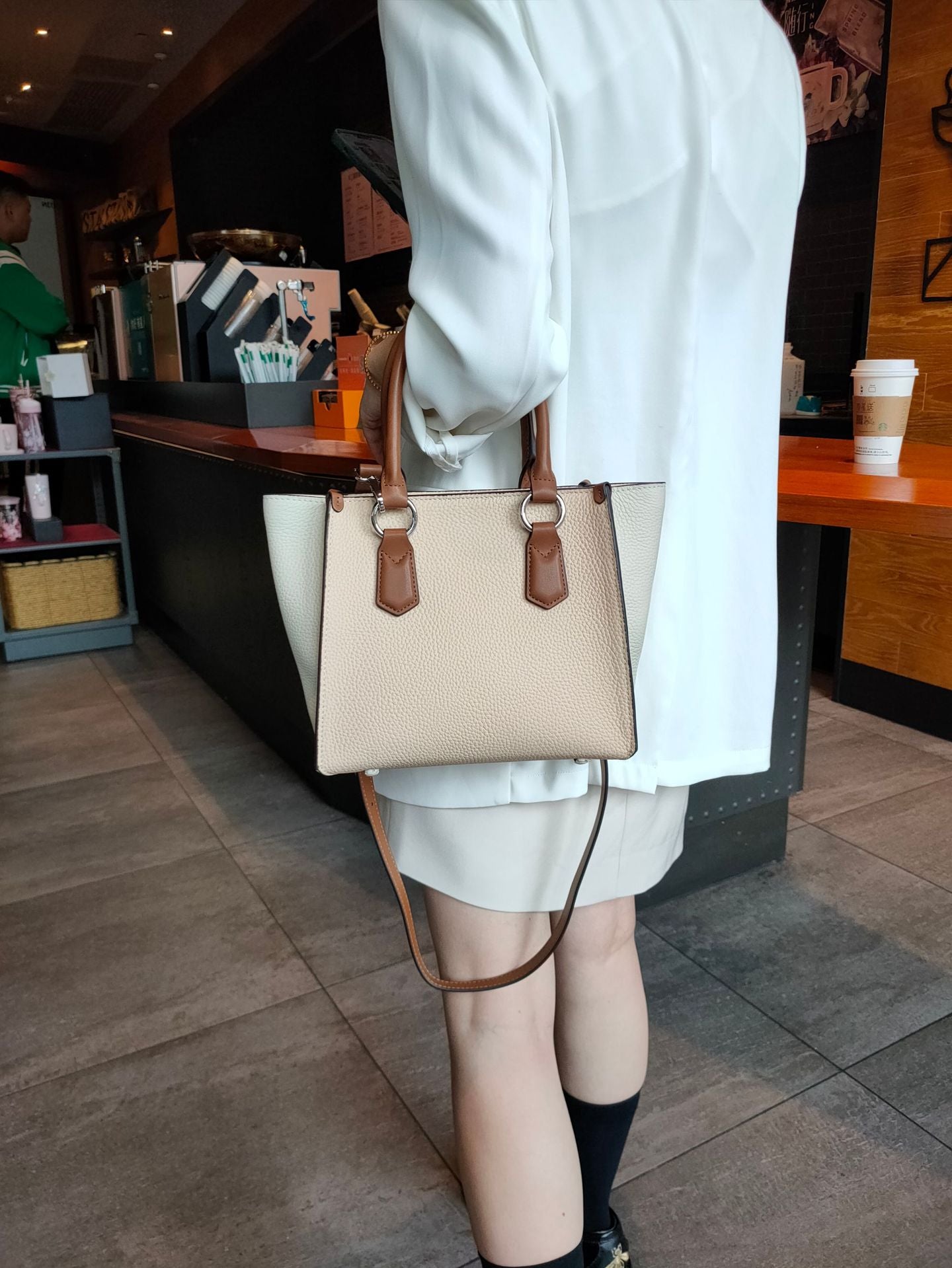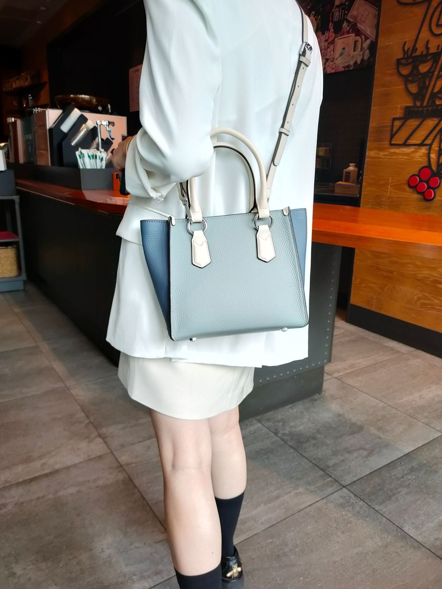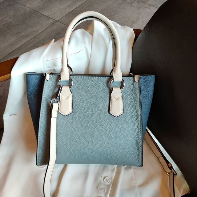 Hit Color Blue Large Office Girl Trapeze Tote Thick Cowhide Leather Women