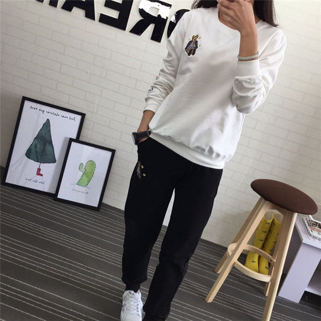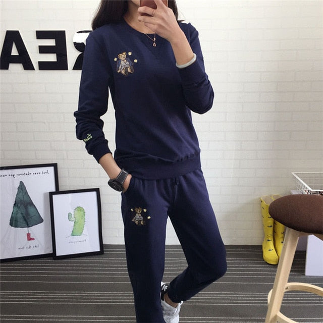 Hot Autumn Winter Tracksuit Long Sleeve Embroidery Cotton Sweatshirts Women 2 Piece Set Tops+Pants Sporting Suit Female
