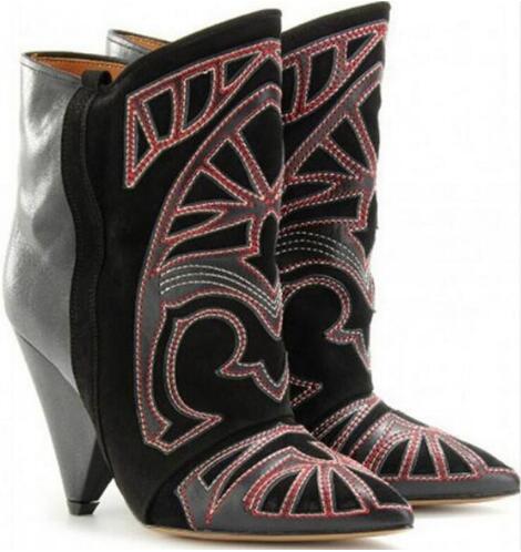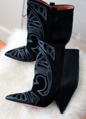 Hot Fashion Red Suede Ankle Boots Embroidered Lady Spike Heels Shoe Cowboy Short Boots Women Slip-on Pointed Toe Ankle Booties