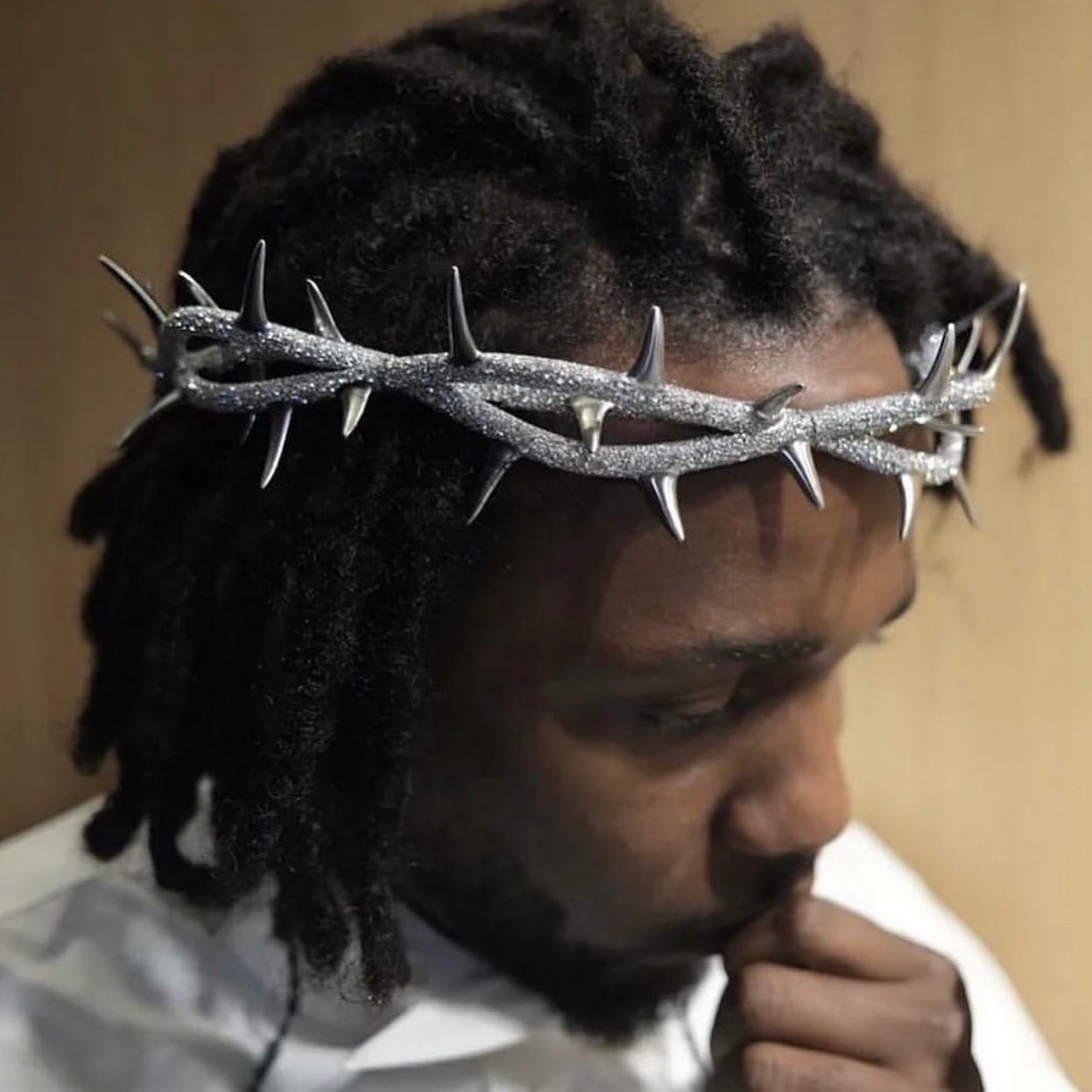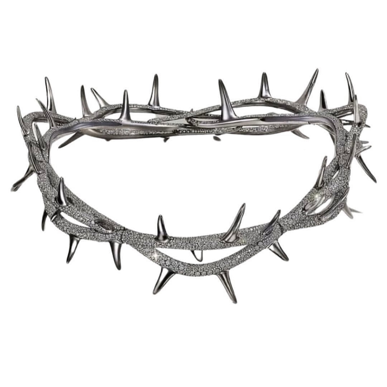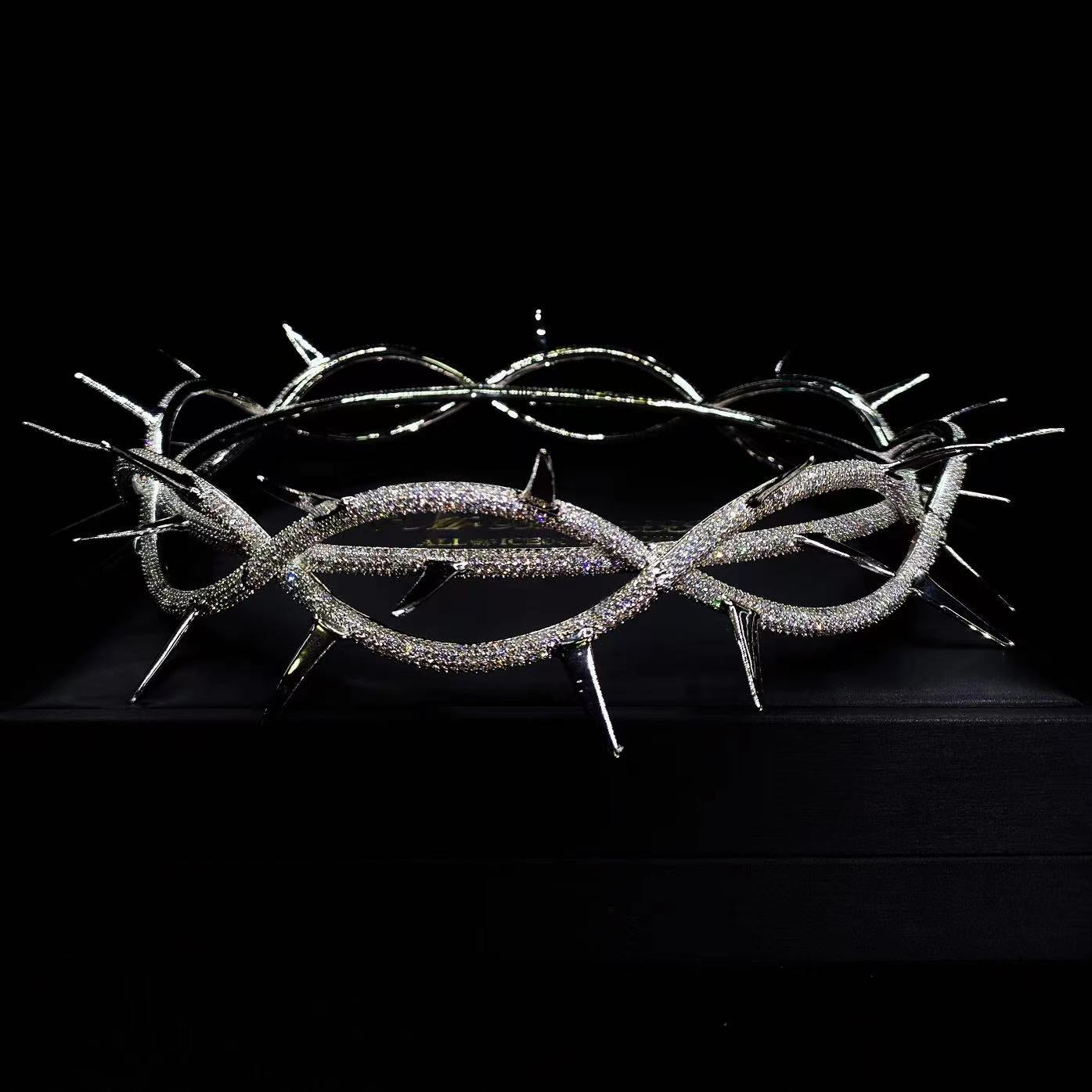 Iced Out Thorn Crown Headpiece, Platinum-Tone, Hip-Hop Accessory