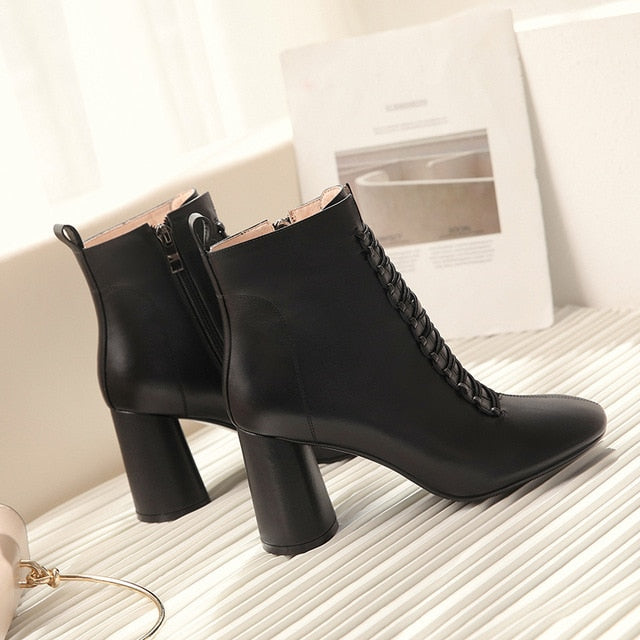 INS HOT women Ankle boots Genuine Leather 22-26.5 cm feet length boots for women Pointed toe Chelsea boots high heel boots