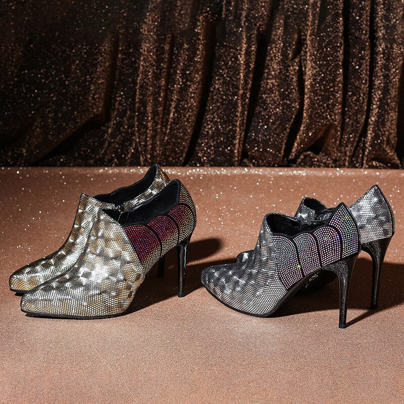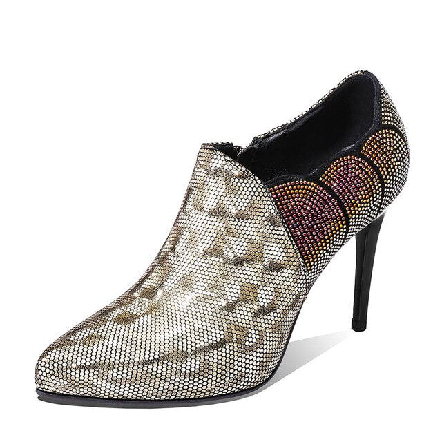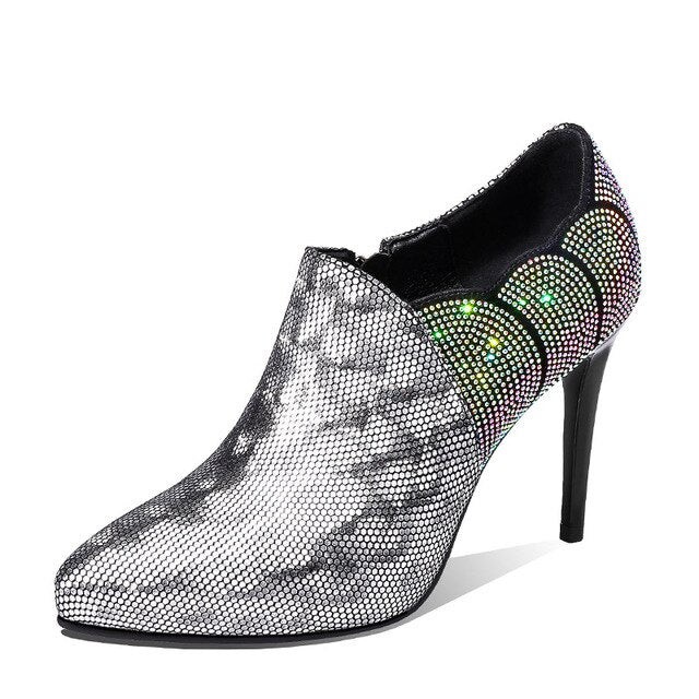 Crystal High Heels Spring Women Pumps Pointed Toe Leather Shoes Woman Zip Footwear Fashion Ladies Bling Shoes Bling