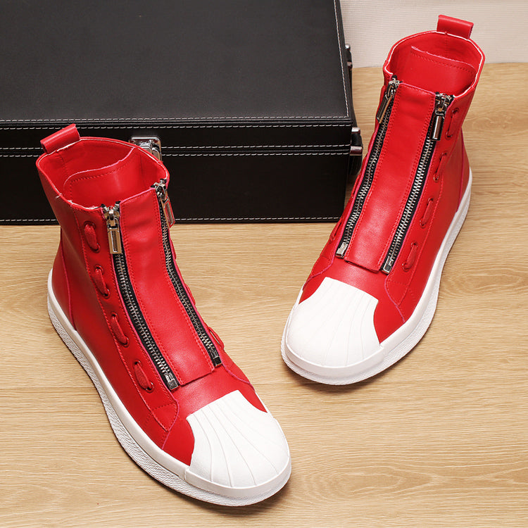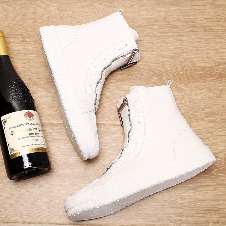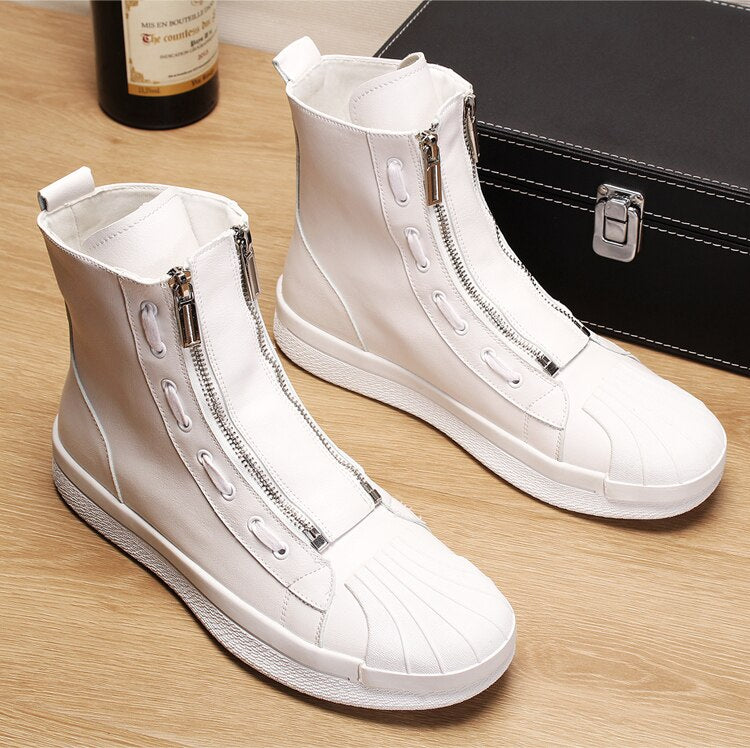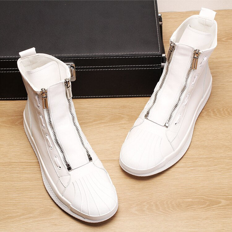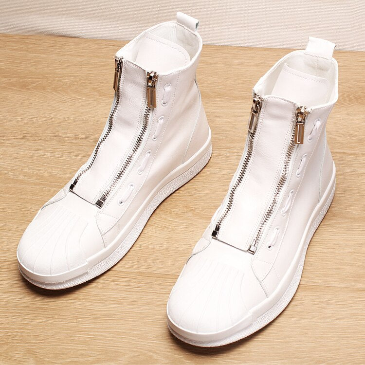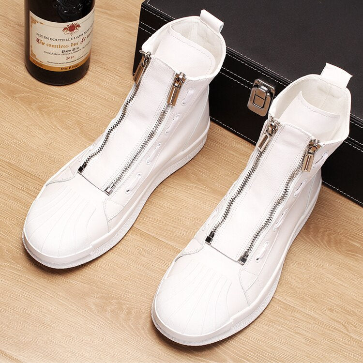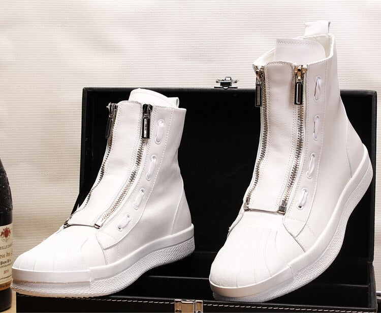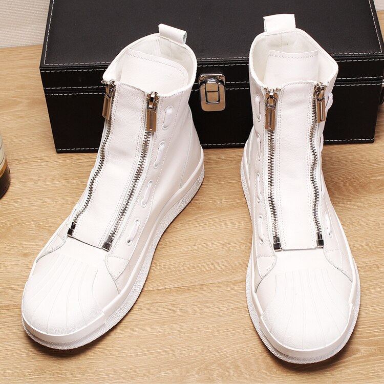 Italian designer men's casual breathable cow leather shoes party nightclub dress flats platform shoe ankle boots sapatos booties