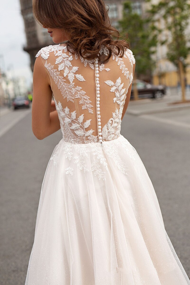 Ivory Back button Boho Bridal Dress Wedding Gowns