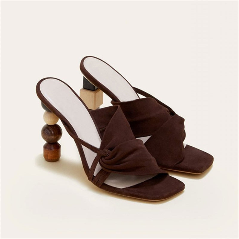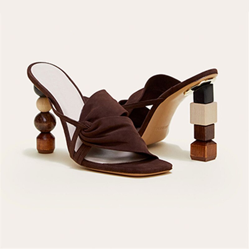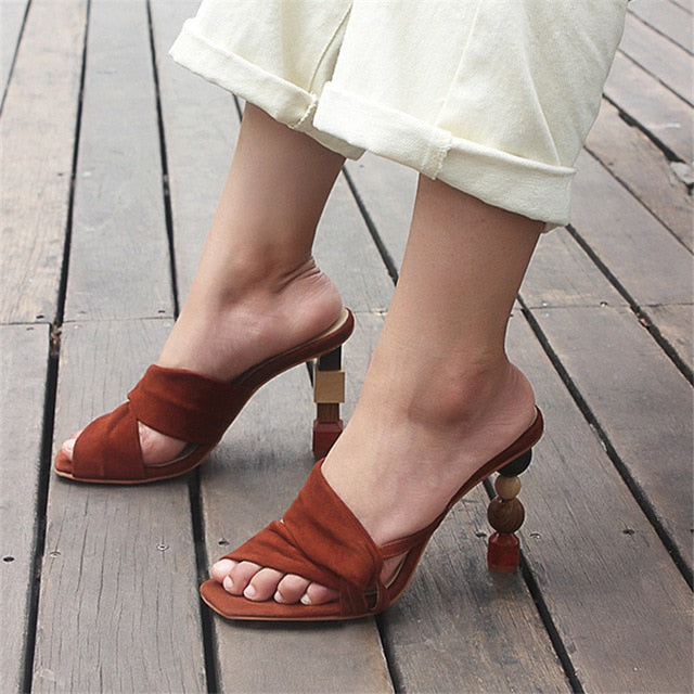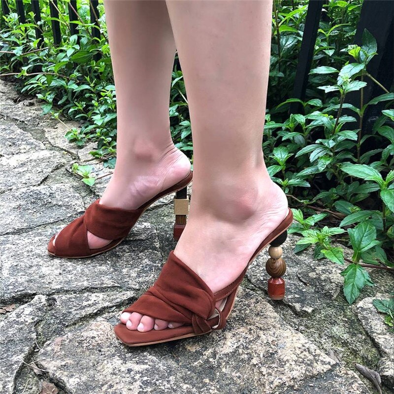 Strange Heel Women Summer Sandals 10CM High Heel Slippers Suede Gladiator Sandal Ladies Prom Dress Shoes Slides