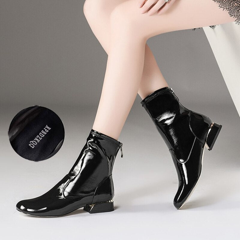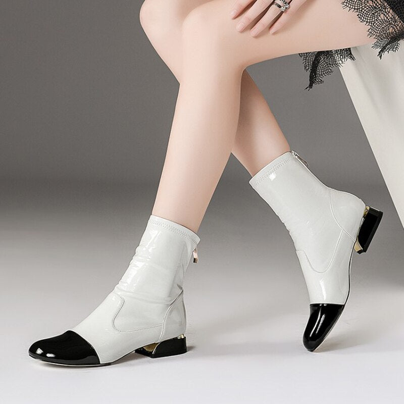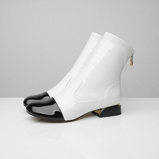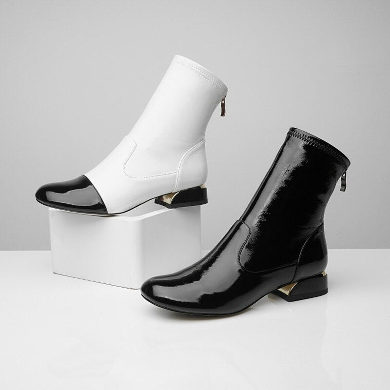 japanese chunky winter patent leather crossdresser white plus size ankle square toe big patchwork 10 luxury brand shoes women