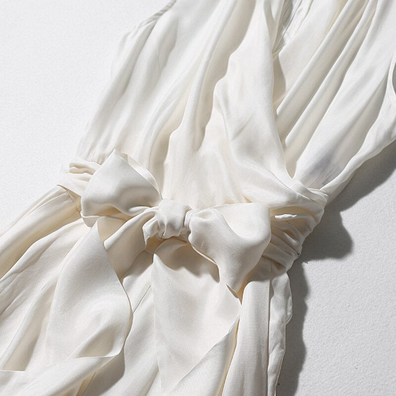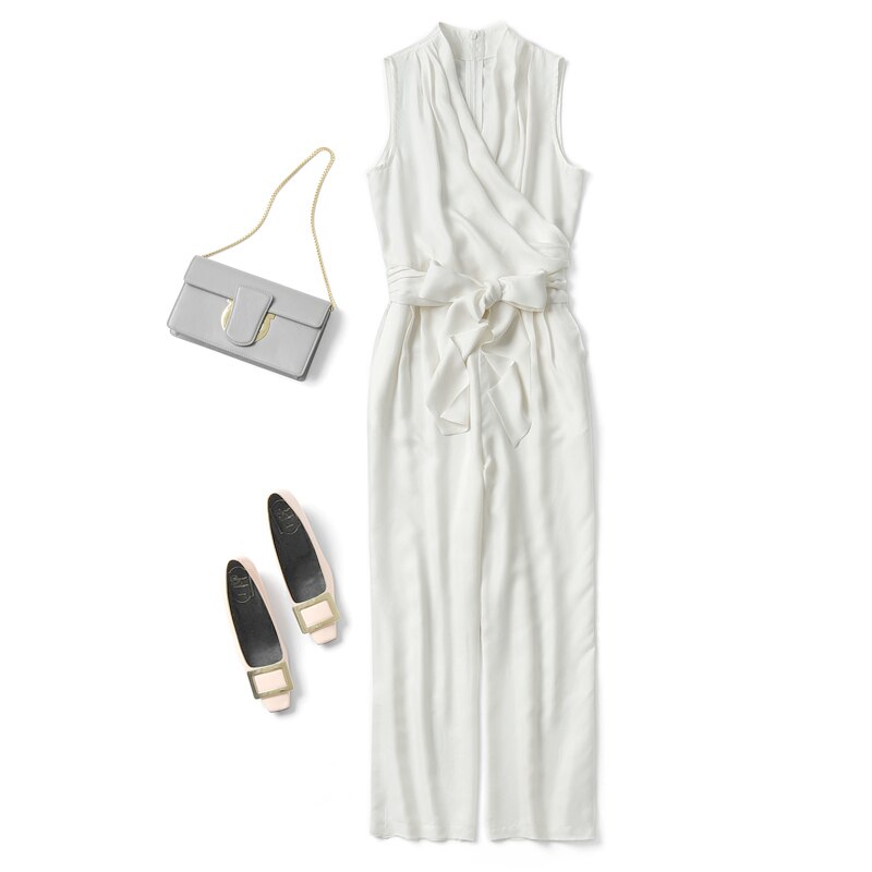 Jumpsuits Women Cross V Neck Sleeveless Sashes Back Zipper