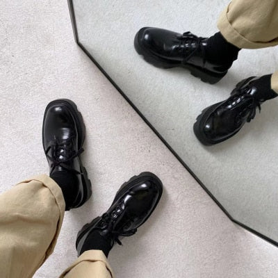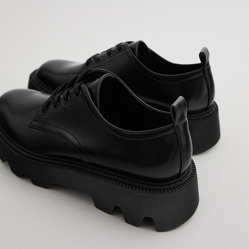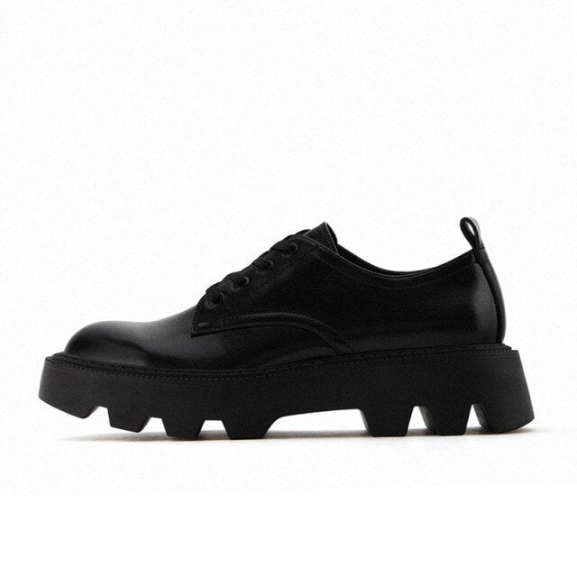Women Flat Shoes Platform Thick Bottom Lace Up