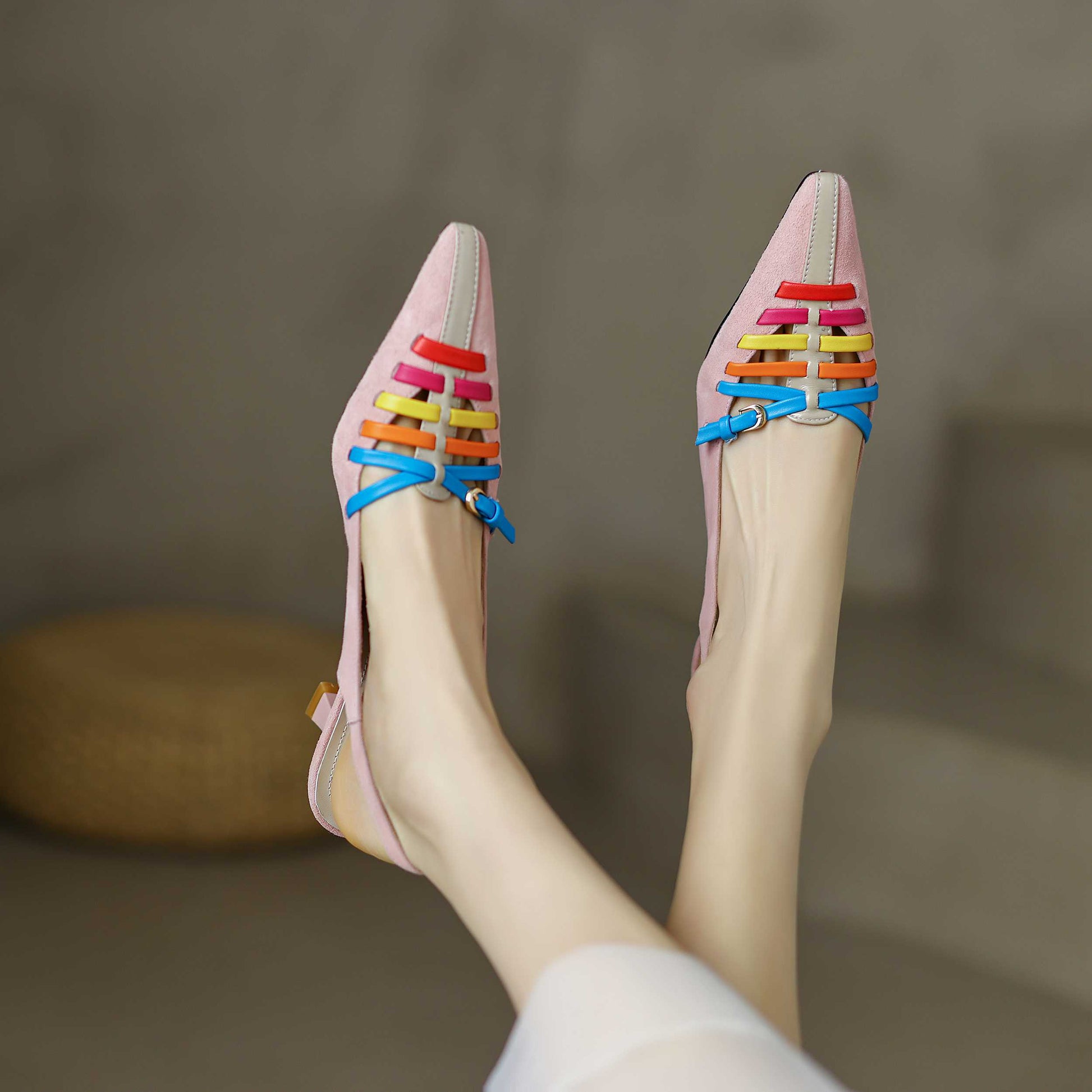 2022 Summer New Kid Suede Small Square Toe Thin High Heels Slingbacks Rainbow Color Fashion Elegant Women Pumps