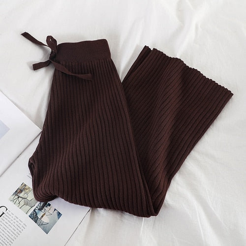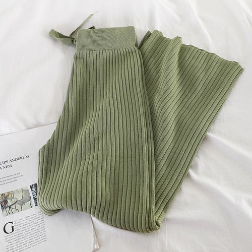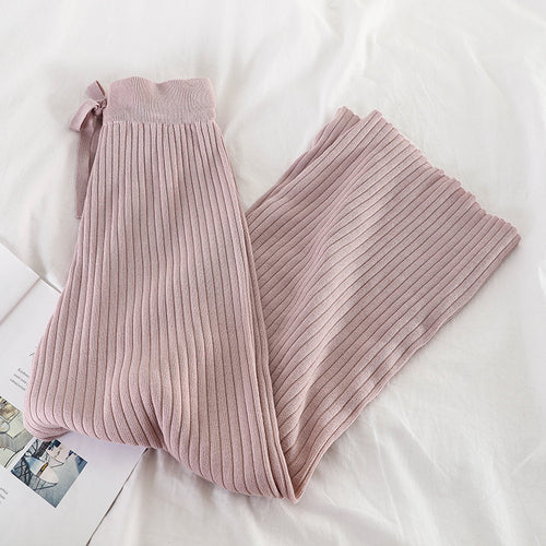 Knitted Wide Leg Pants Women Solid Pit Long Trousers
