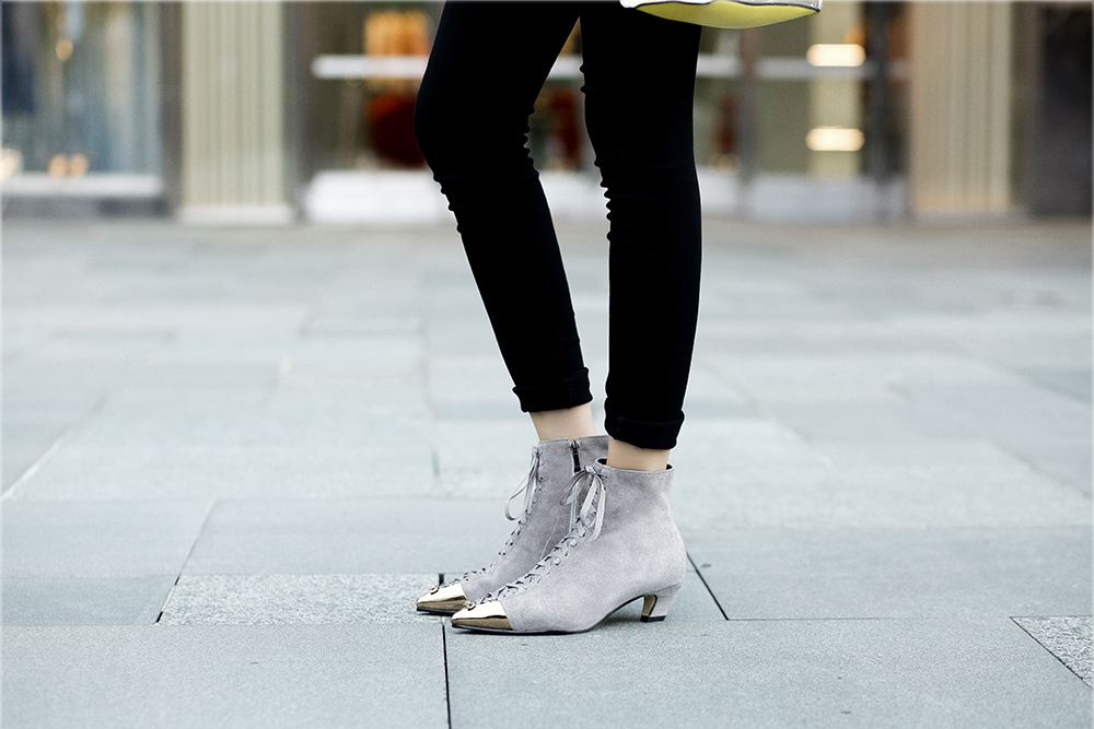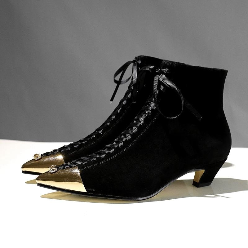 new hot sale kid suede pointed metal toe mixed color butterfly-knot med heels European designer ankle boots