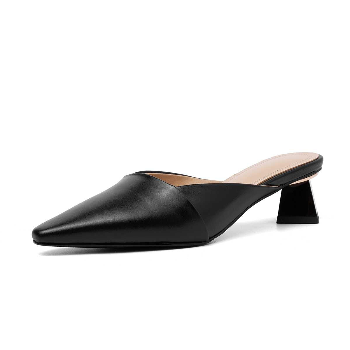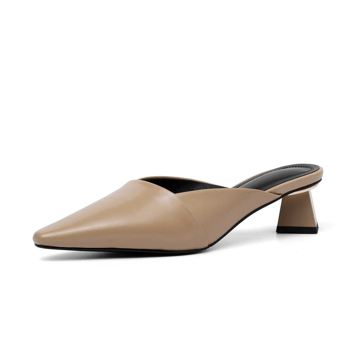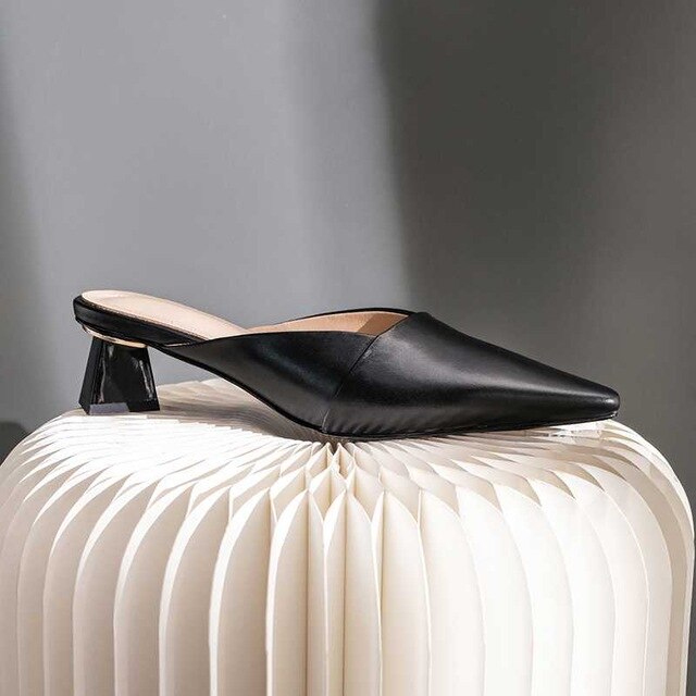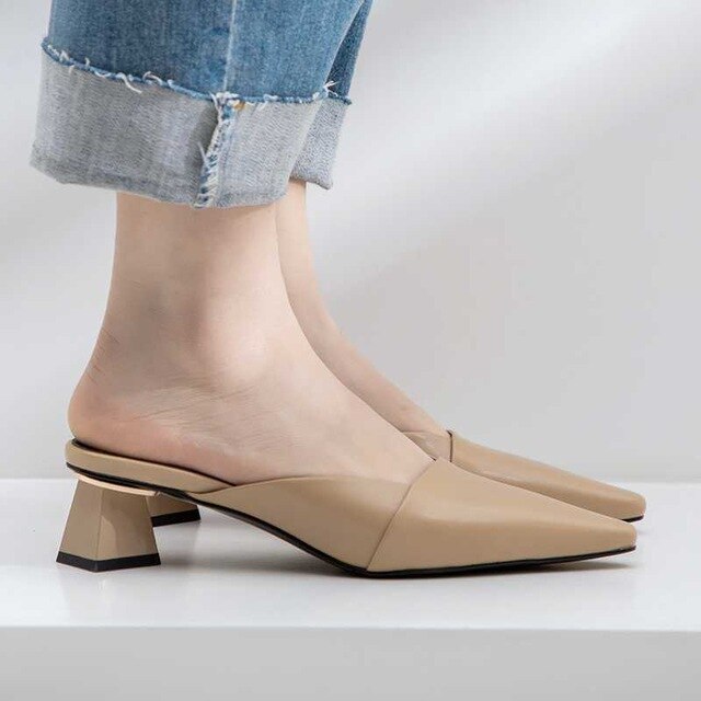 European movie stars genuine leather slip on mules strange style med heels square toe simple style party pumps L01