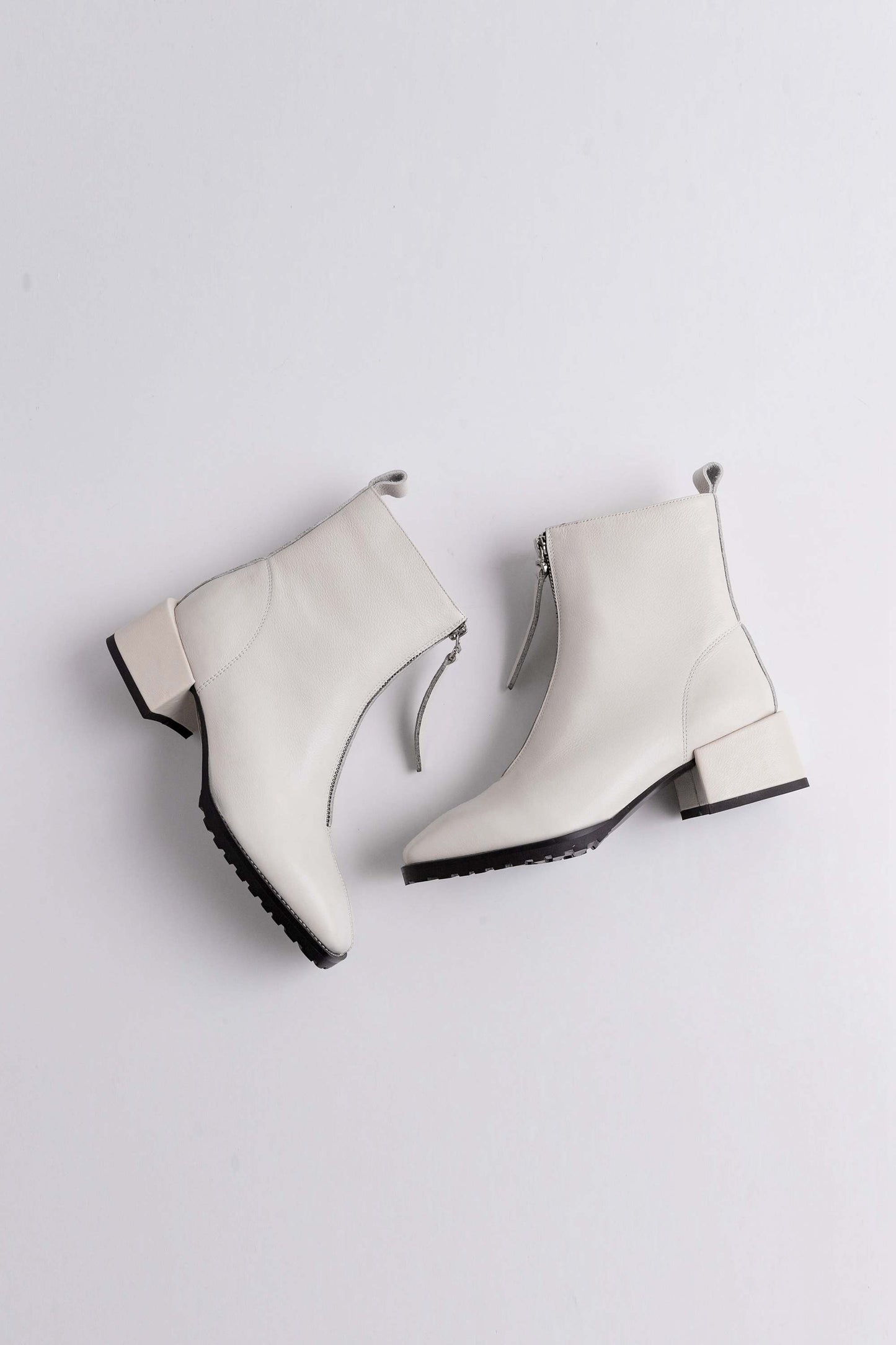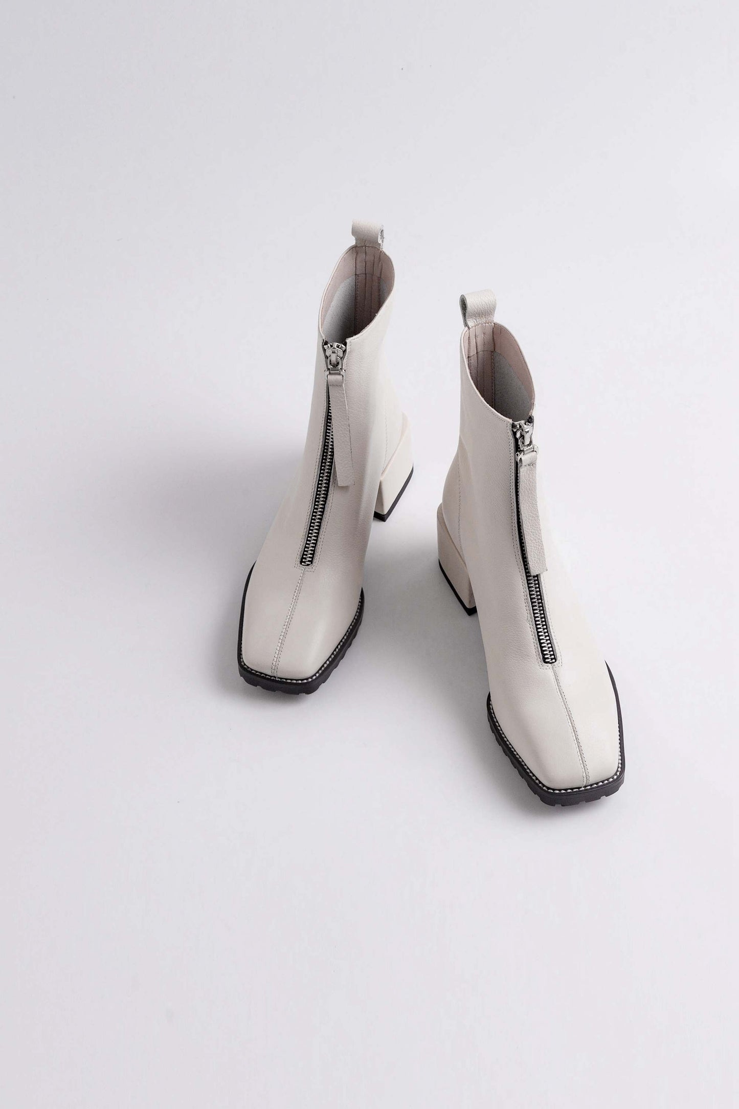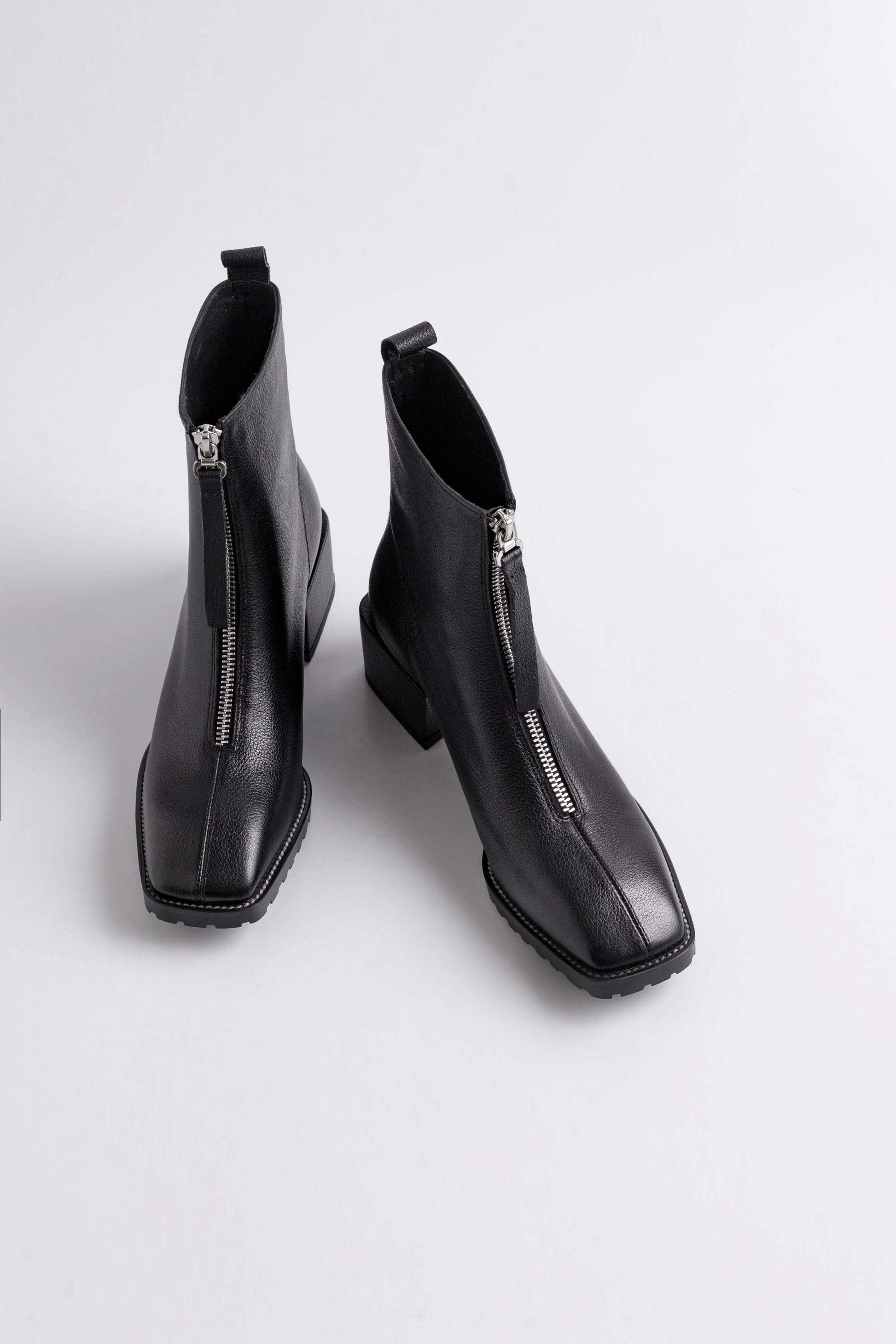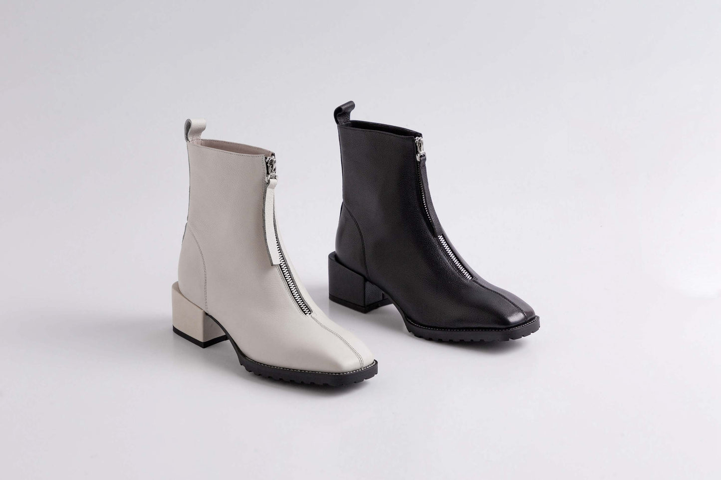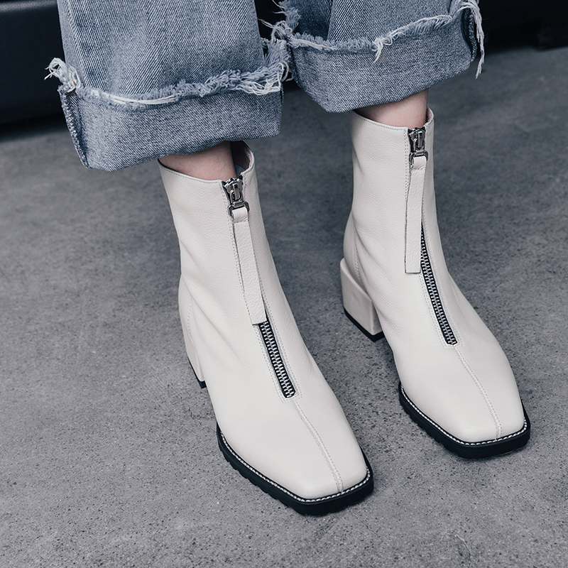 genuine leather square toe streetwear med heels winter keep warm front zipper high fashion Chelsea ankle boots