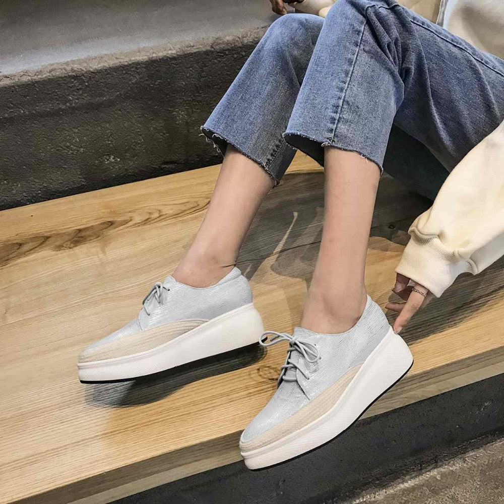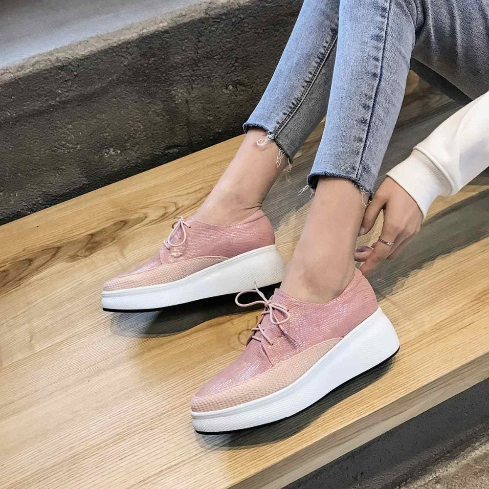 special sheep leather wedges platform pointed toe sneakers high street fashion leisure casual vulcanized shoes