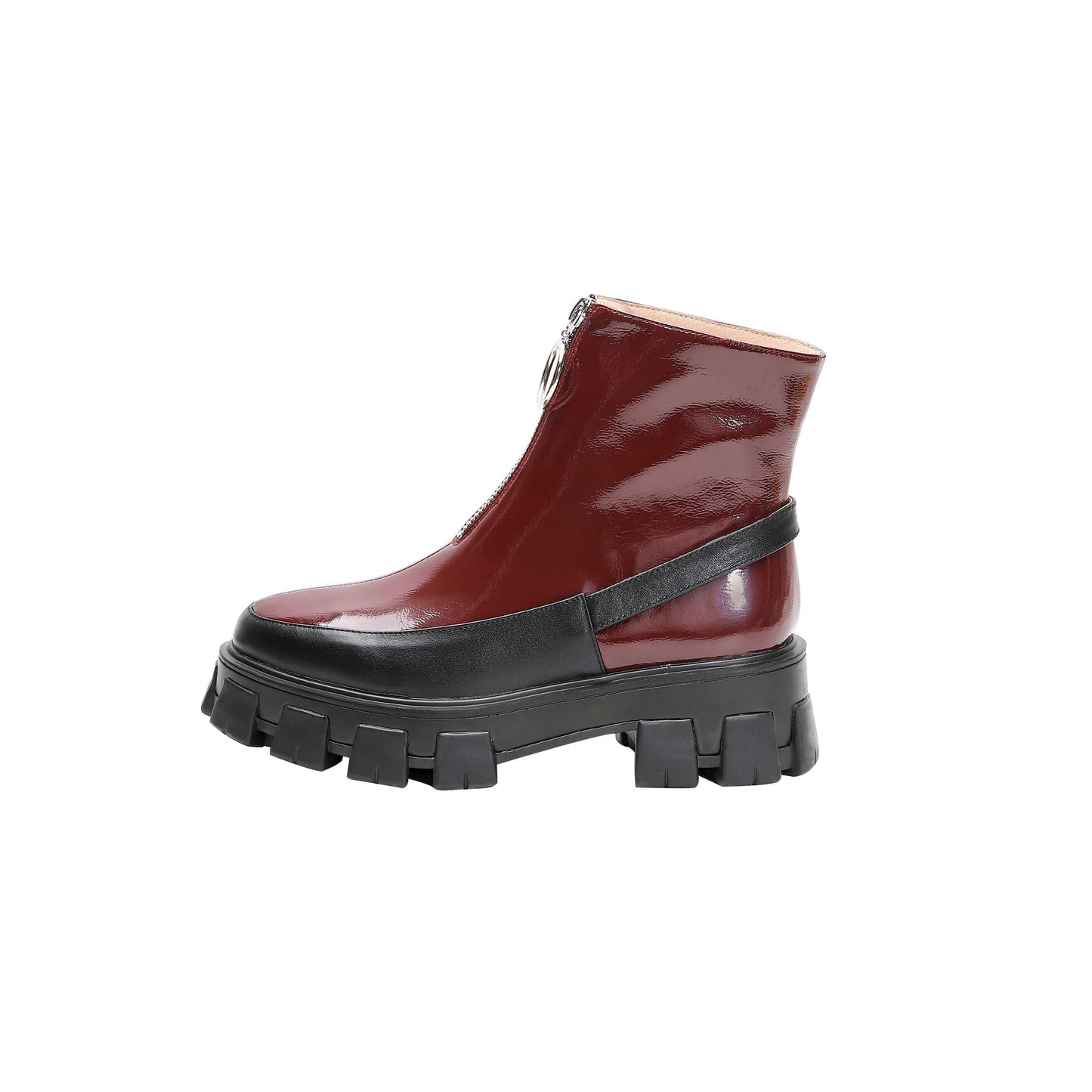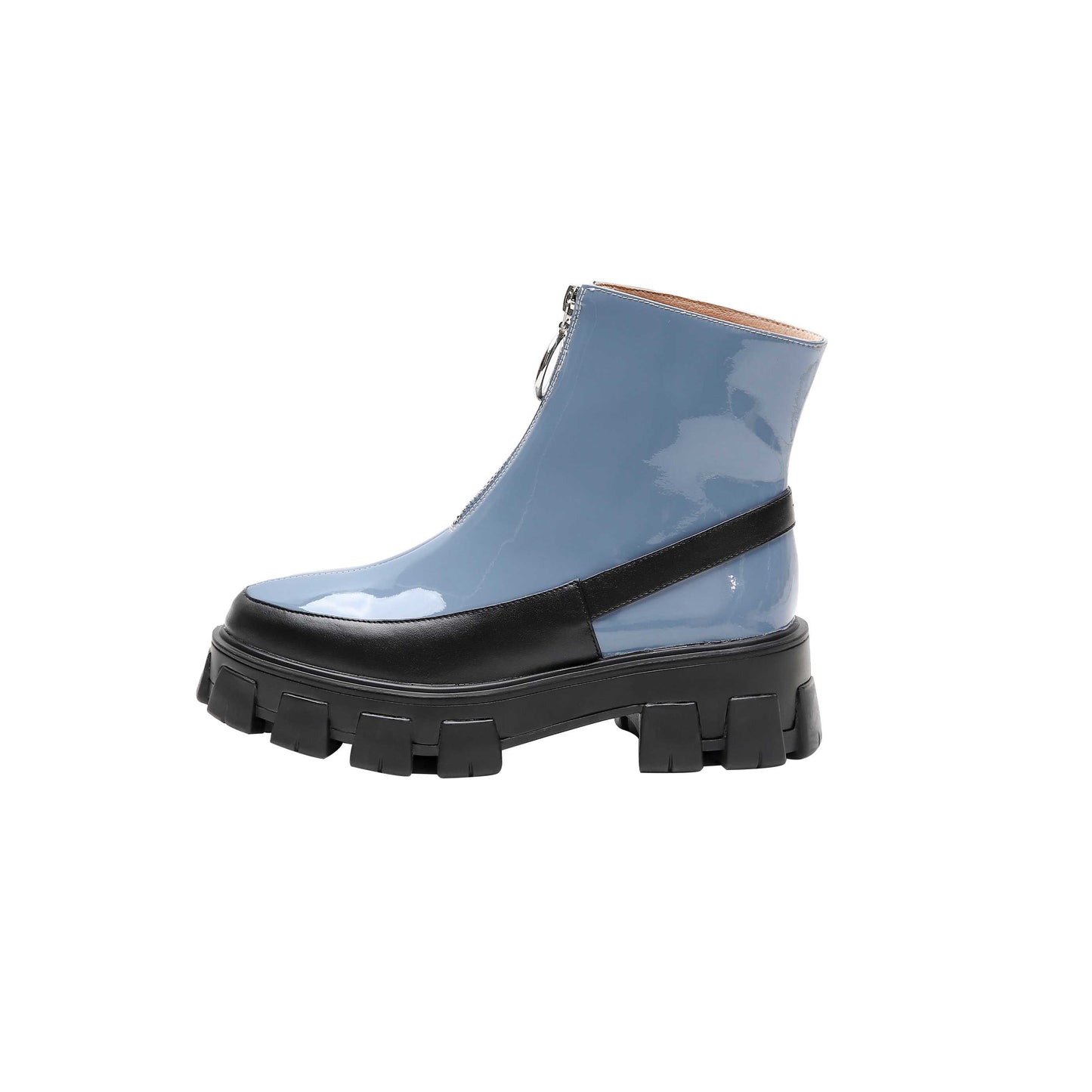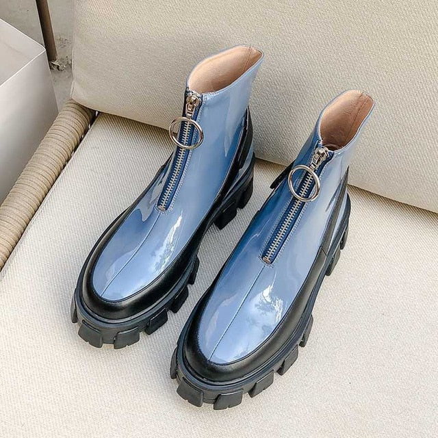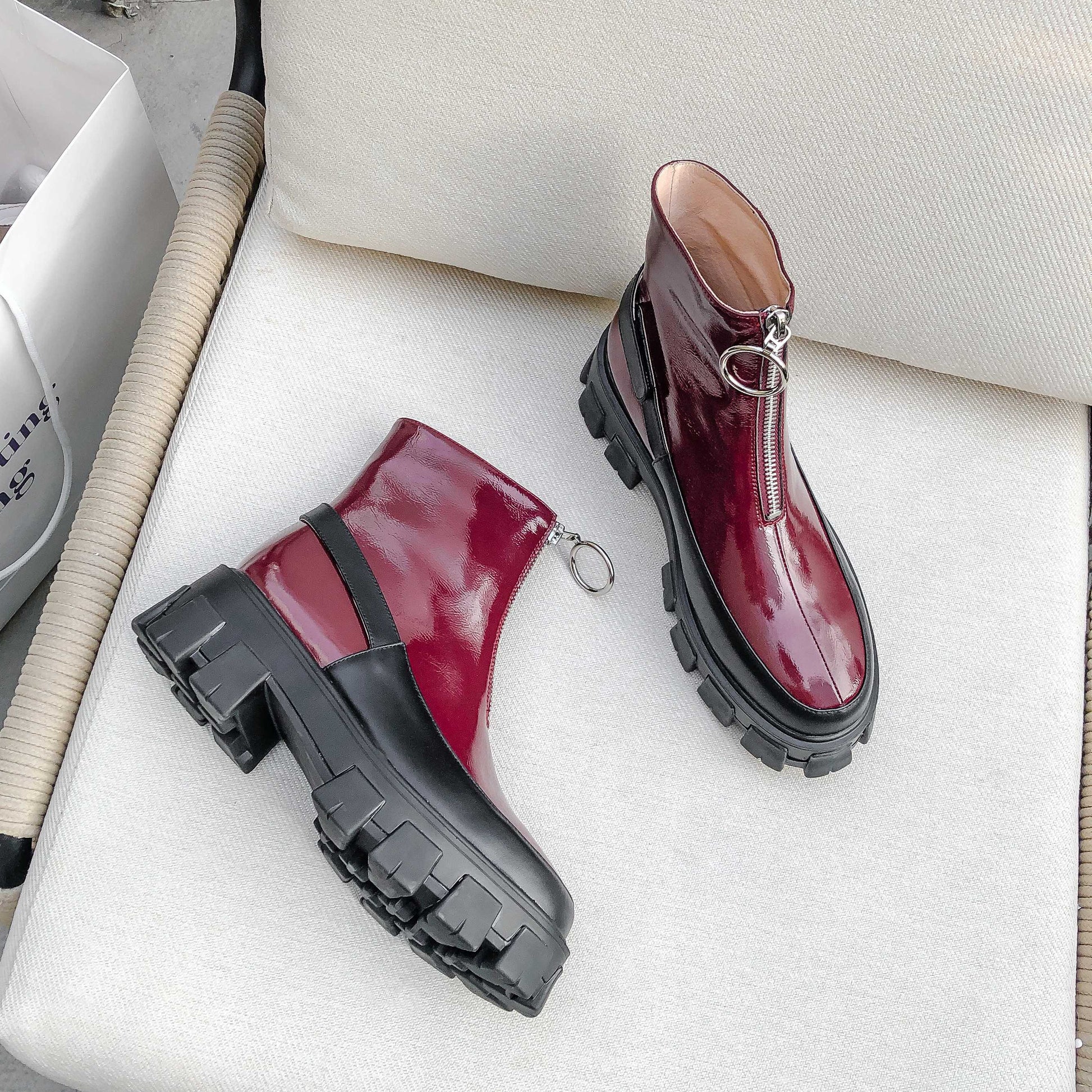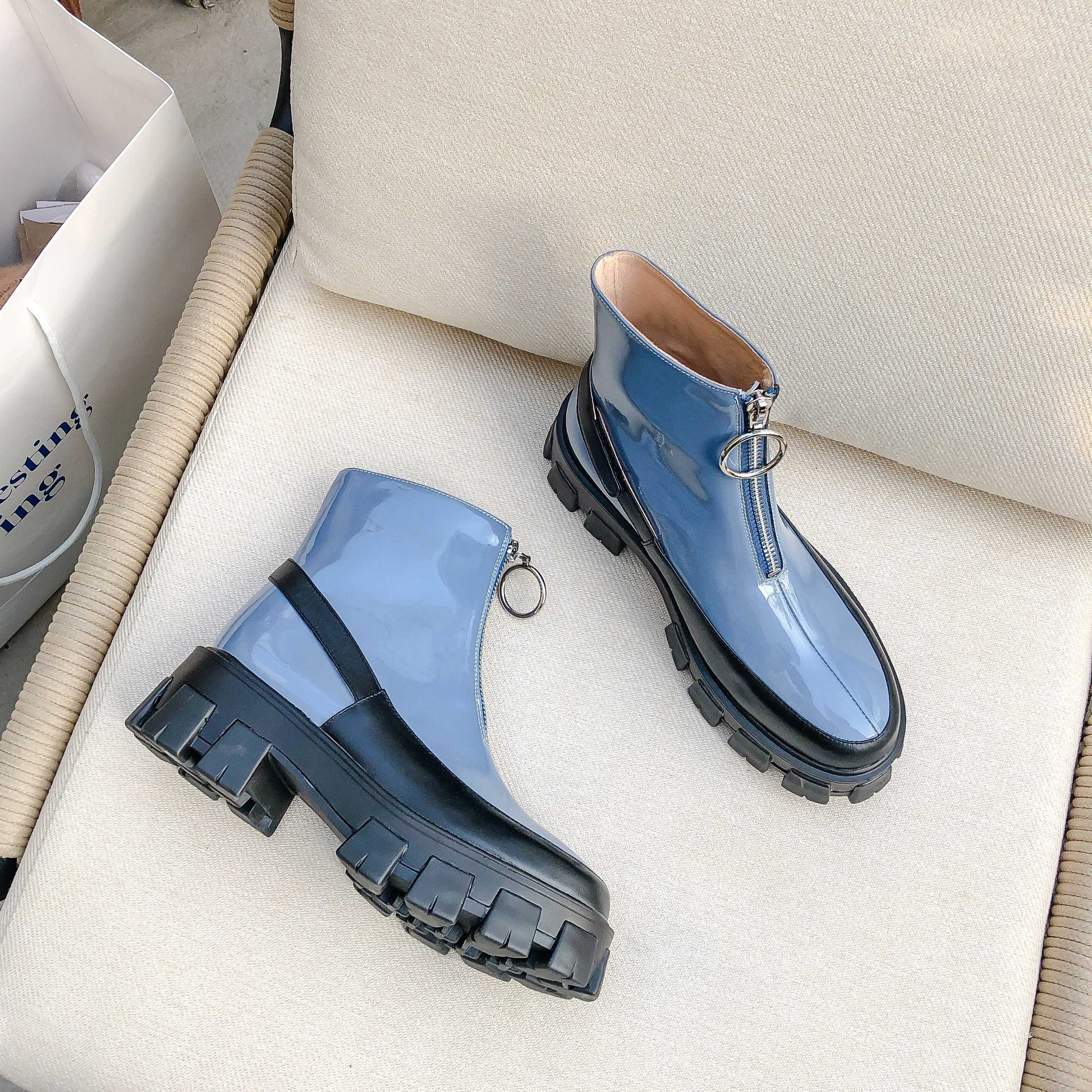 sweet fashion mixed colors thick bottom cow leather rock Zipper round toe waterproof winter women ankle boots