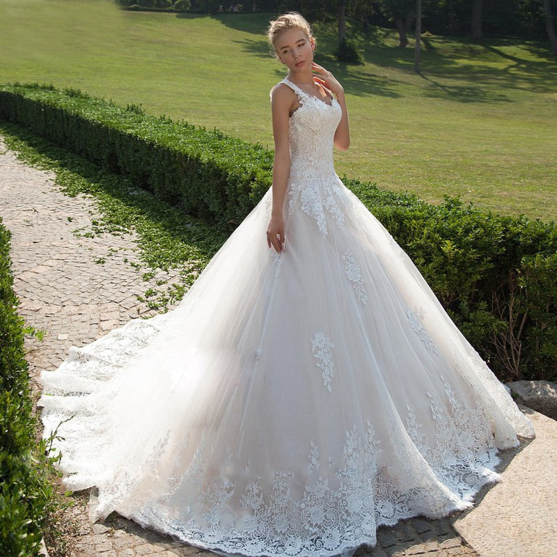 Lace Applique Turkey Bridal Gowns Ribbon Sash Tulle