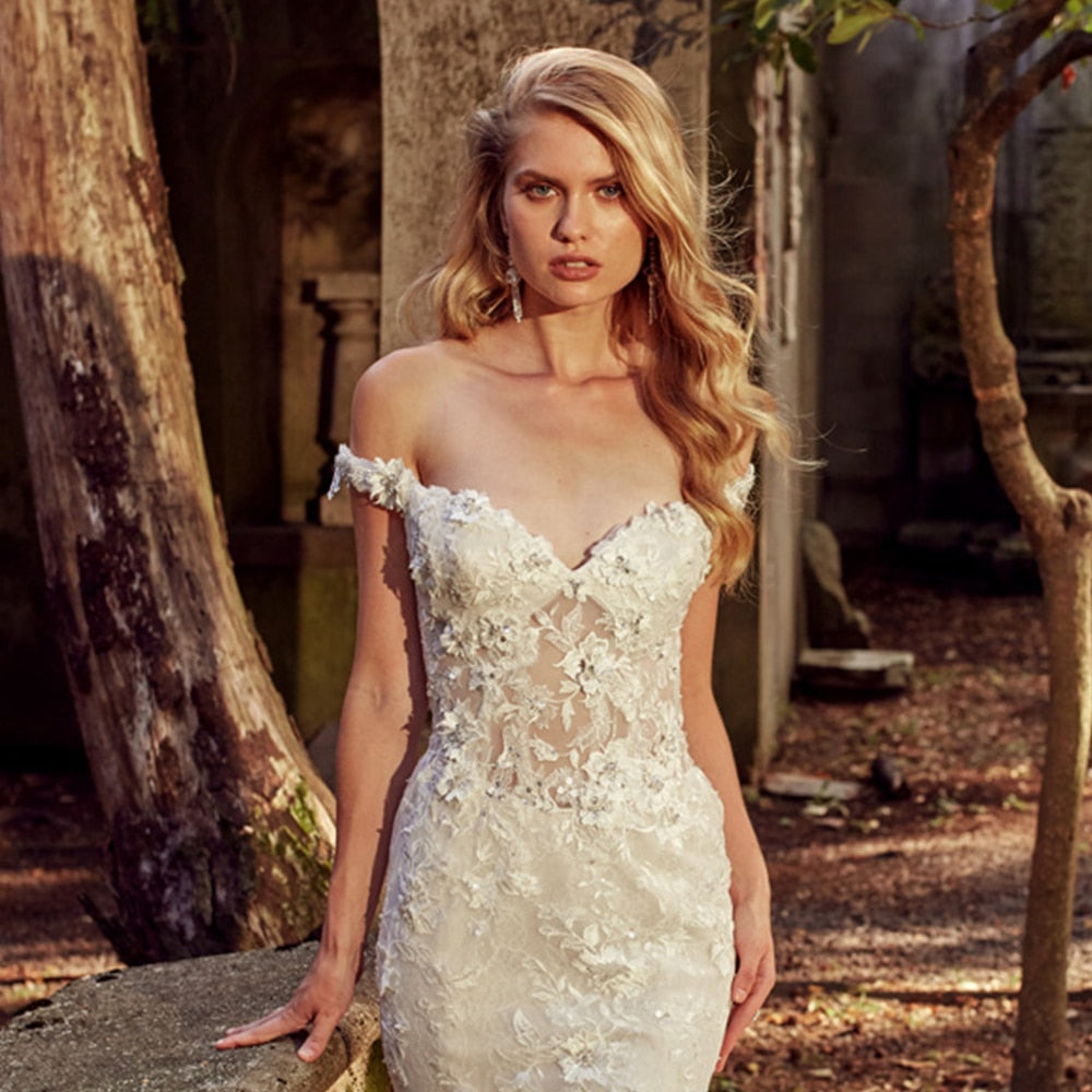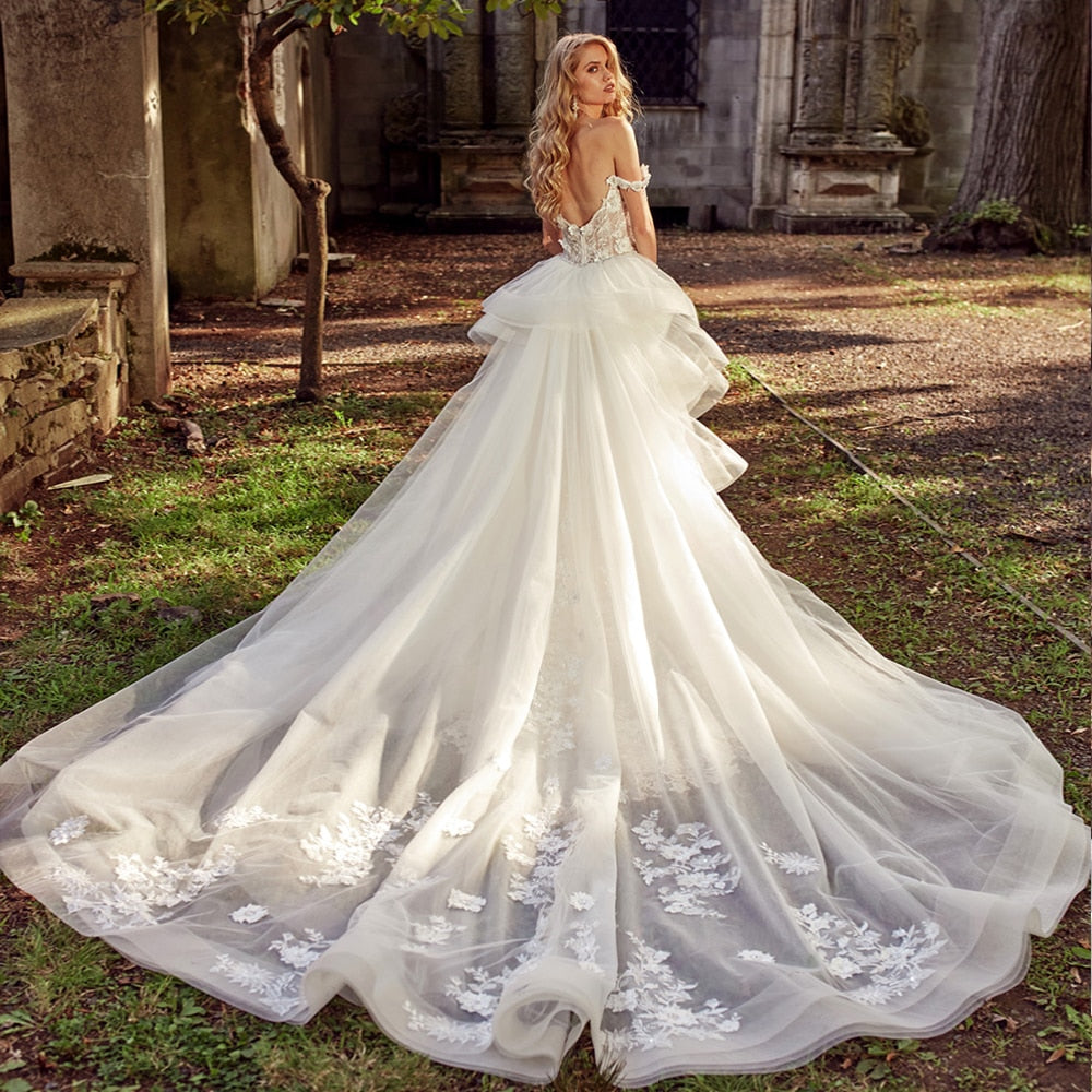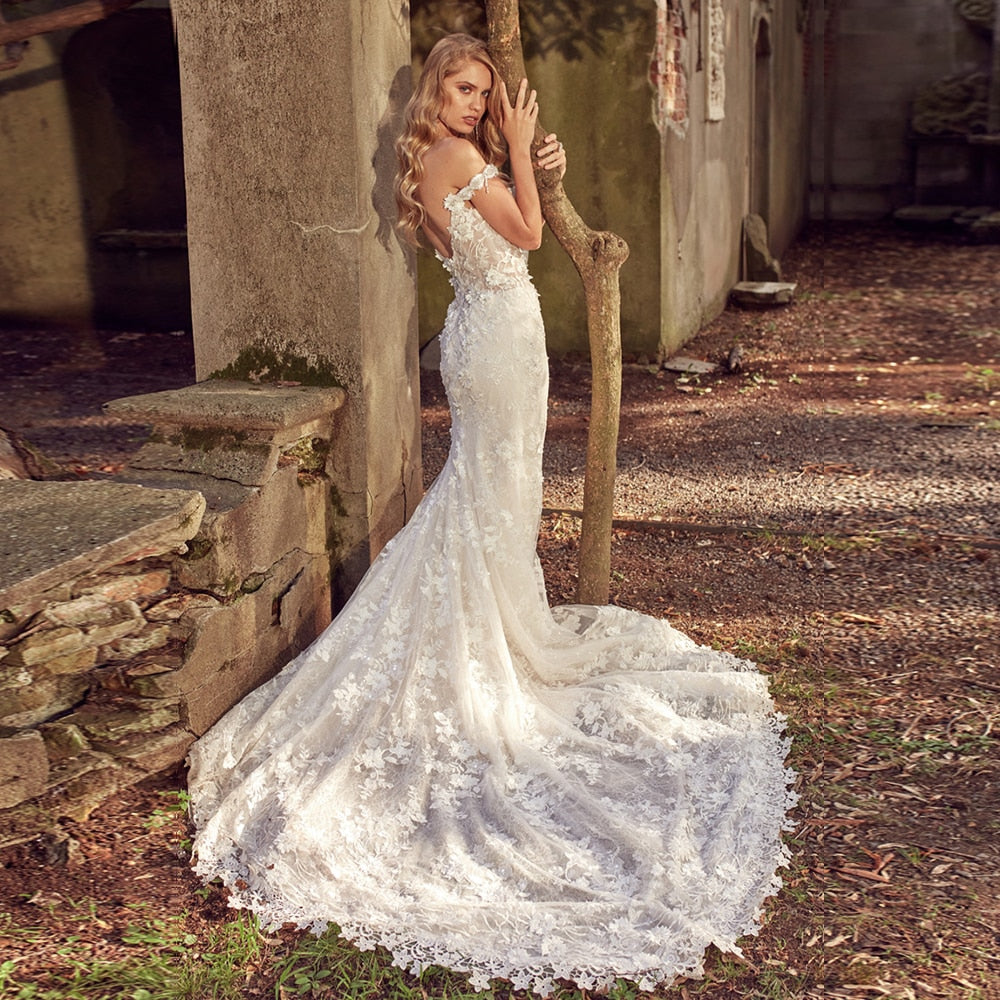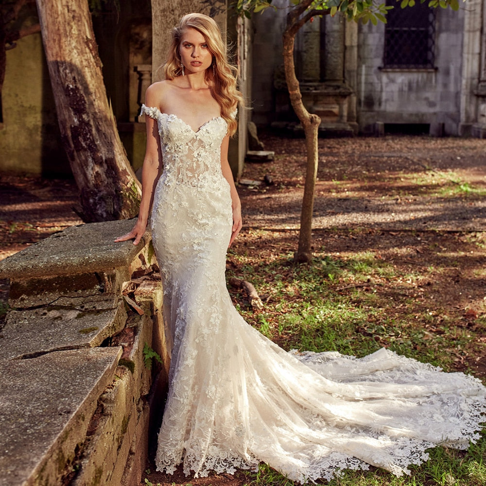 Lace Flowers Crystal 2 Pieces Mermaid Wedding Dresses