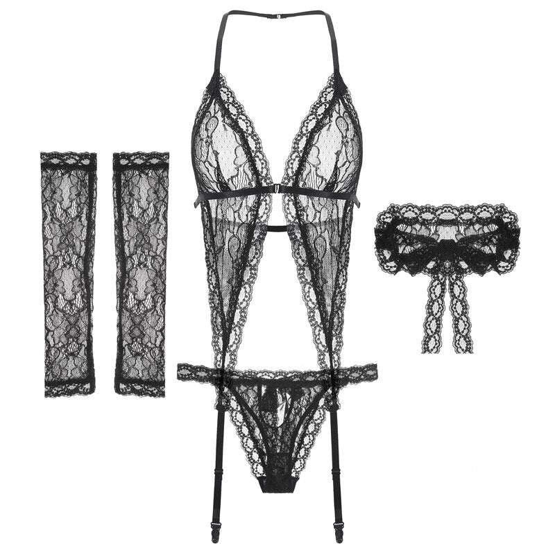 Lace Perspective Bra Sling Tops and Shorts Underwear Set