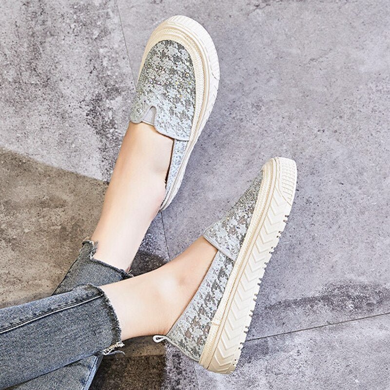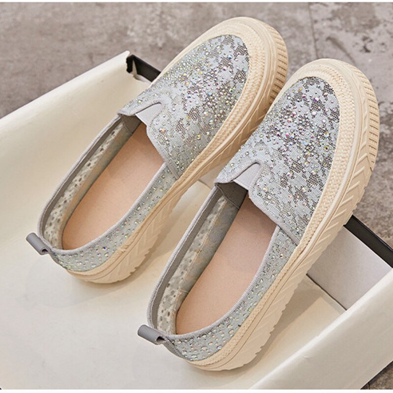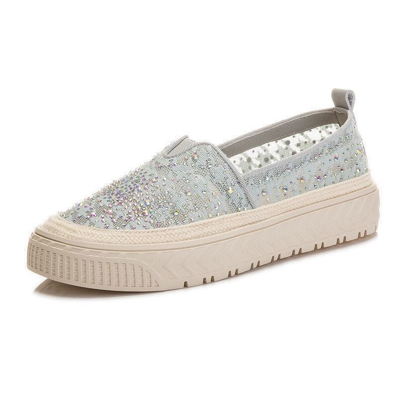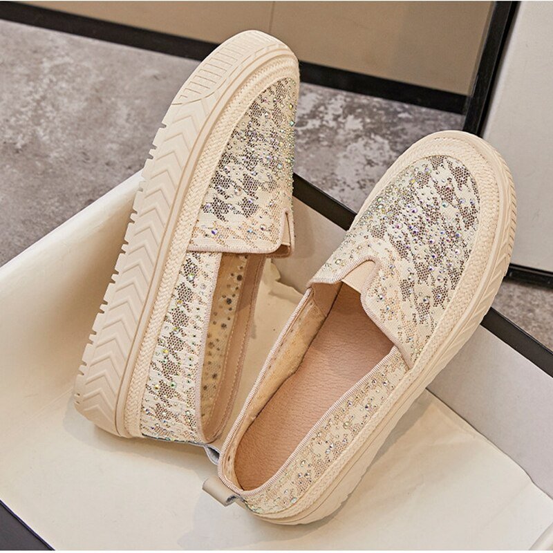 Lace Slip-on Flats Women Round Toe Crystal Mary Janes Shoes
