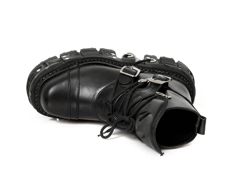 Lace Up Metal Genuine Leather Men Mid-calf Boot Round Toe Motorcycle Boots