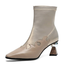 Cow Leather Satin Women Ankle Boots Square Toe Strange Style High Heel Snake Prints Ladies Winter Shoes