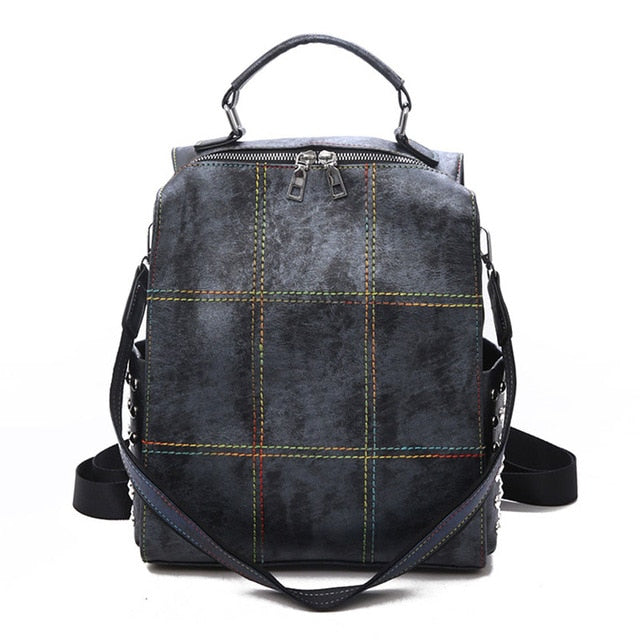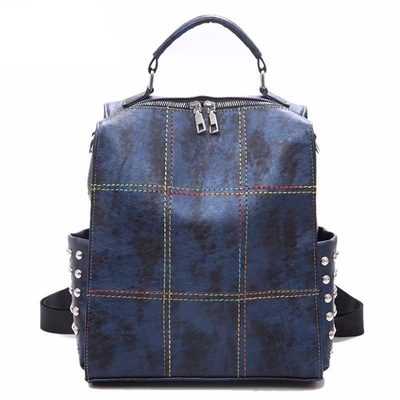 Large Capacity Backpack Women Colorful Thread School Bags For Teenage Girls Shoulder Bag Rivet Travel Backpack Female