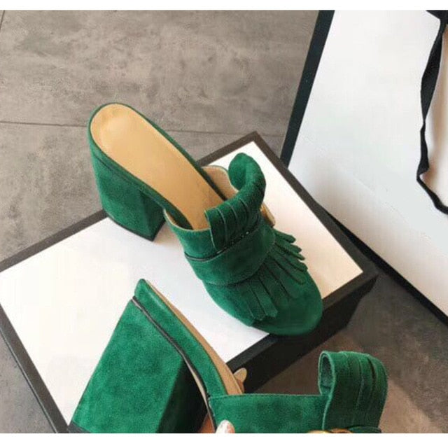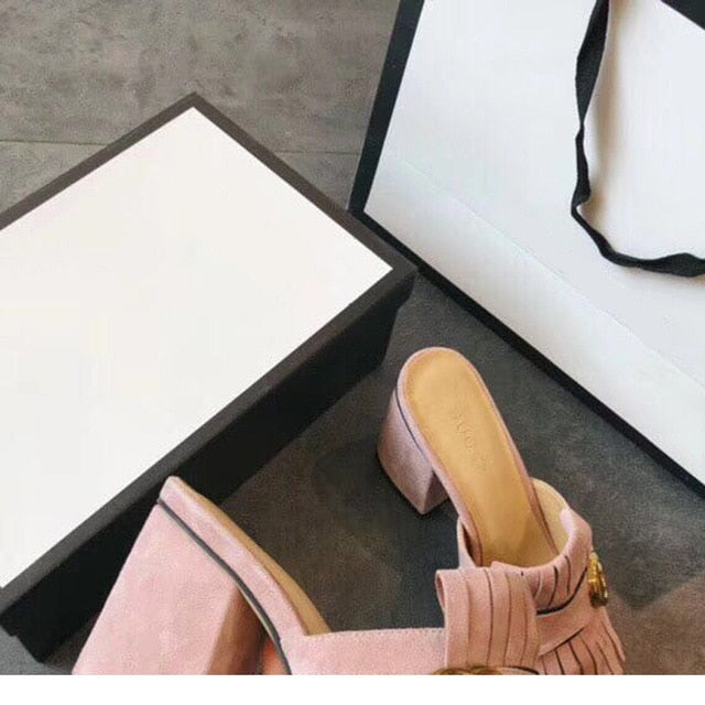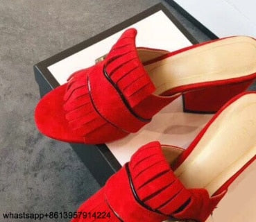 leather Fish mouth toe heels Luxury women gg shoes retro fashion tassels high heels footwear women pumps