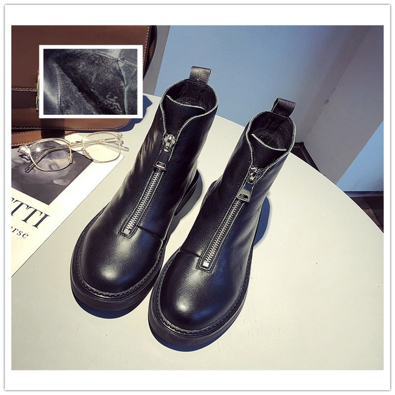 Leather zip booty cotton winter boots shoes woman women shoes zapatos mujer boots snow boots ankle boots for women booties