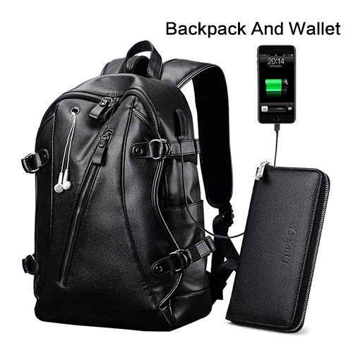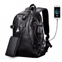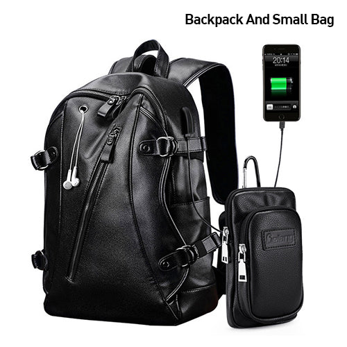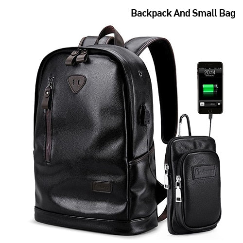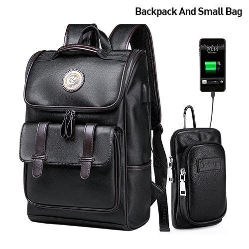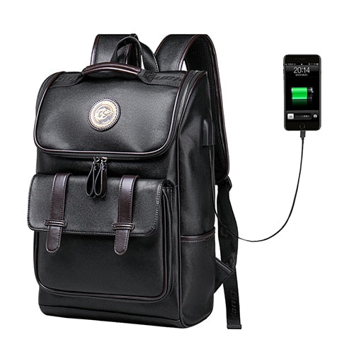 Men Backpack External USB Charge Waterproof Backpack Fashion PU Leather Travel Bag Casual School Bag leather bookbag