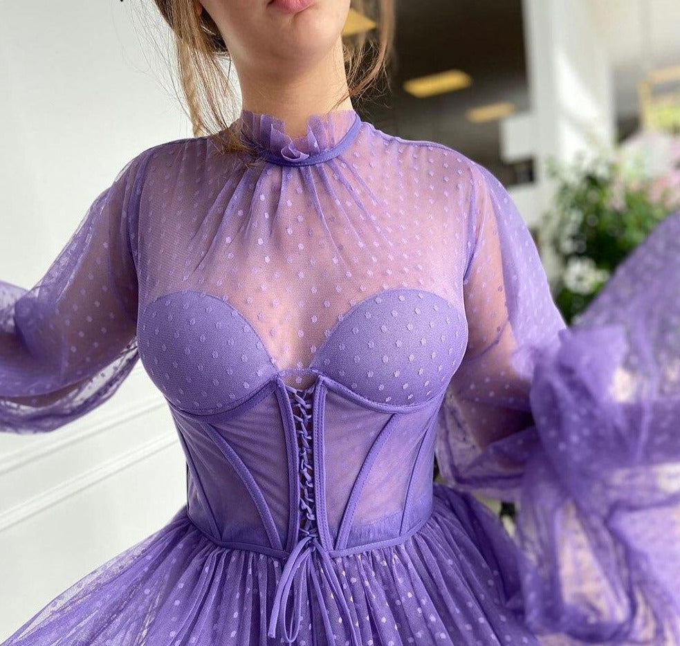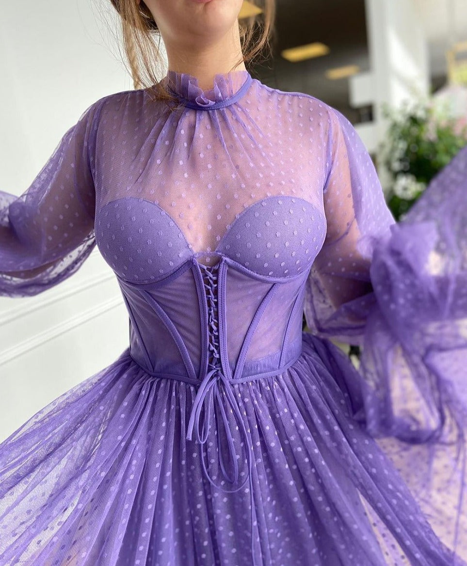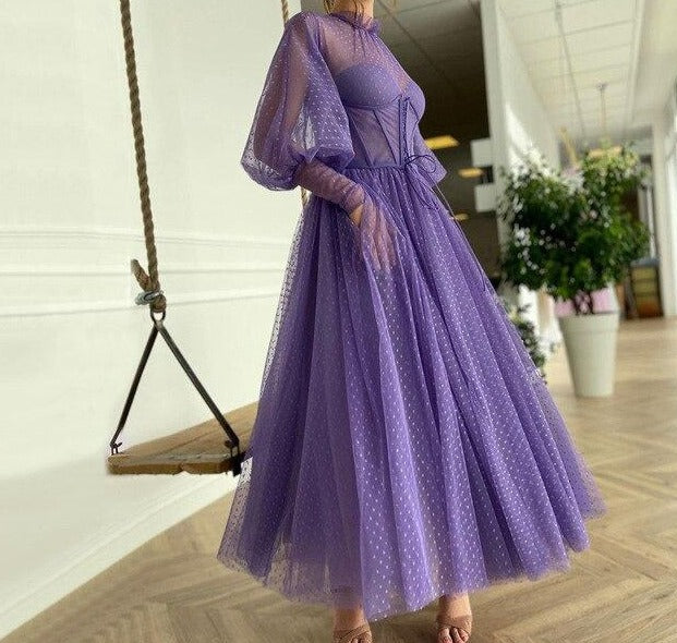 Lilac Lantern Sleeves Evening Dresses Gowns A-Line Sexy Ankle Length For Women Party Night