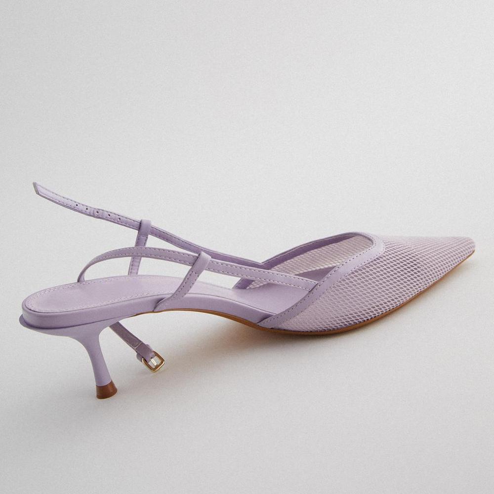 women Light violet mesh cat heel high