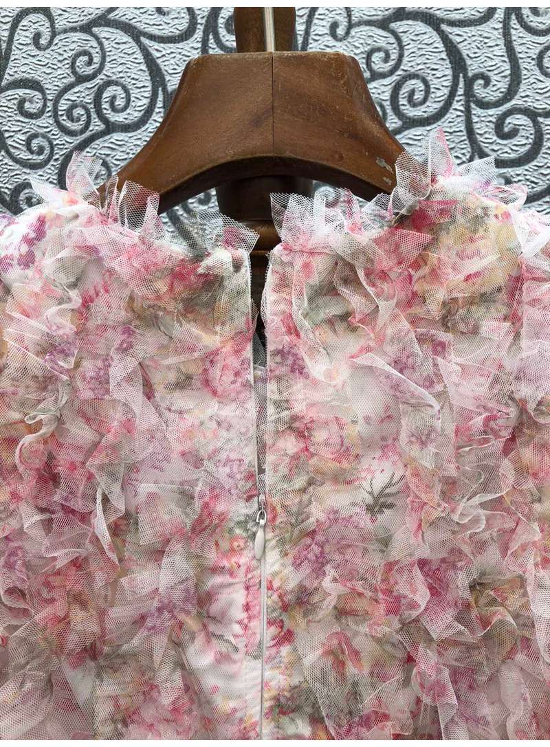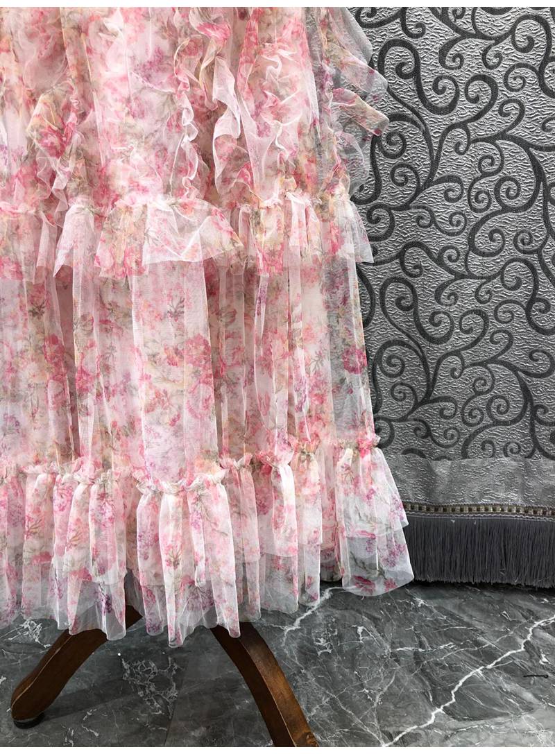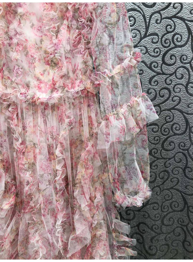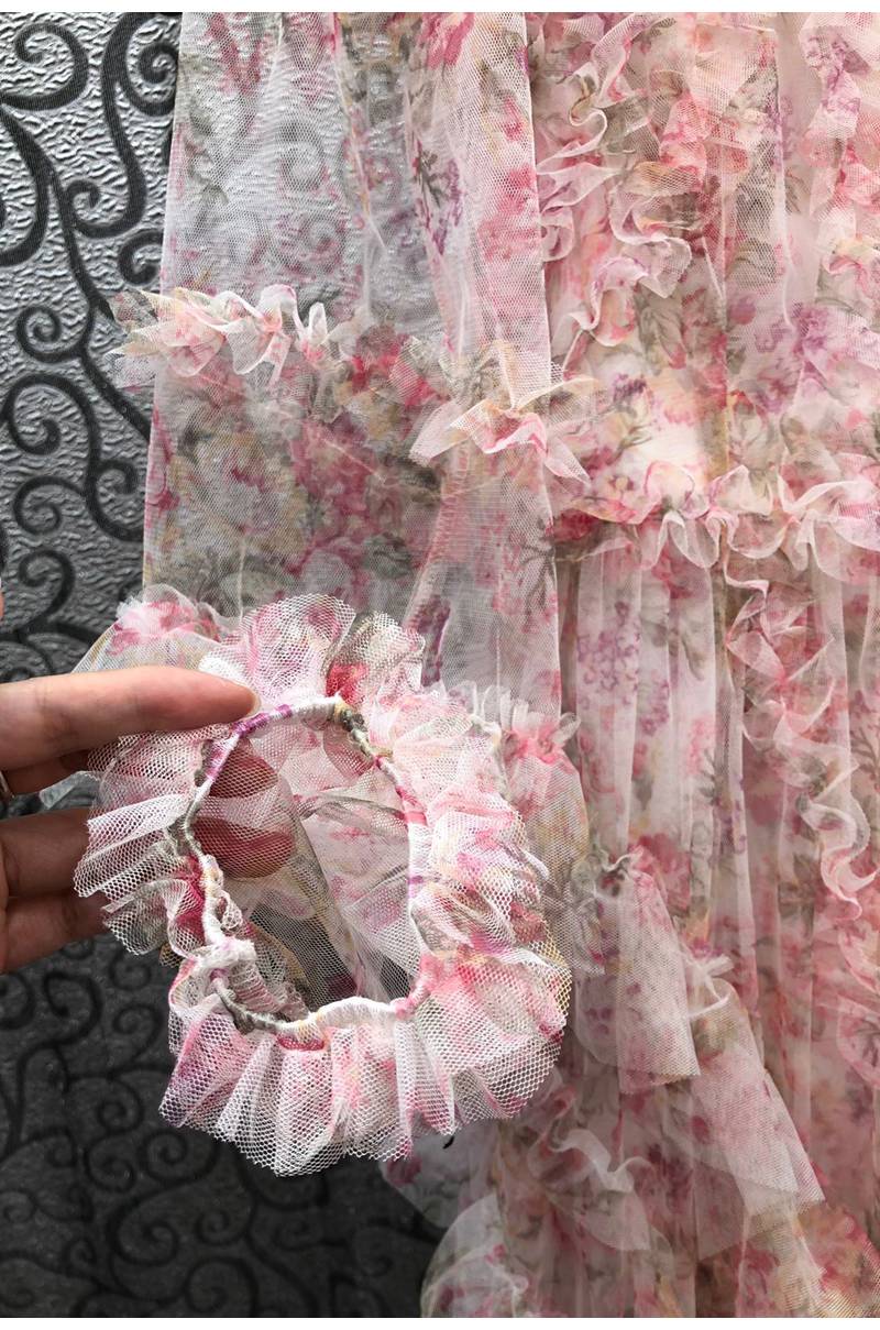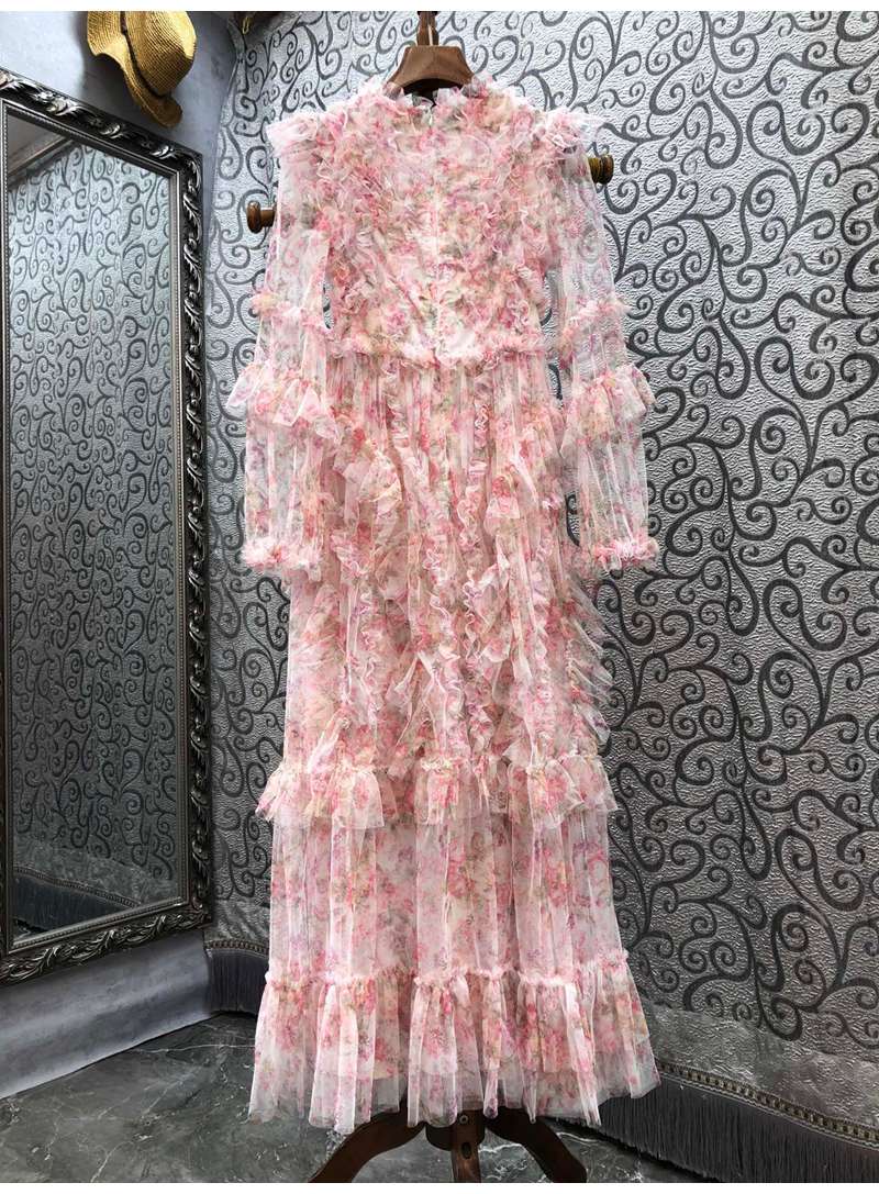 Long Maxi Dress 2022 Spring Summer Wedding Party Women Allover Ruffle Floral Patterns Long Sleeve Party Ladies Long Mesh Dress
