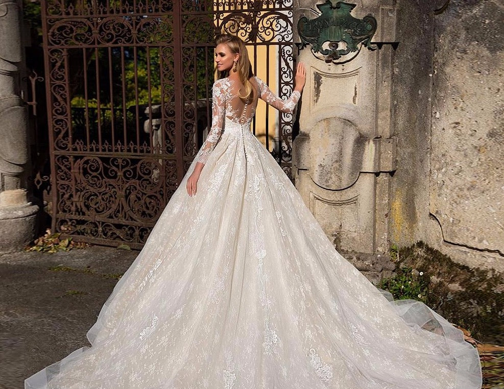 Long Sleeve Appliques Lace A-line Wedding Dresses Vestido Branco Buttons Up Back Floor Length Princess Wedding Gowns Bodas