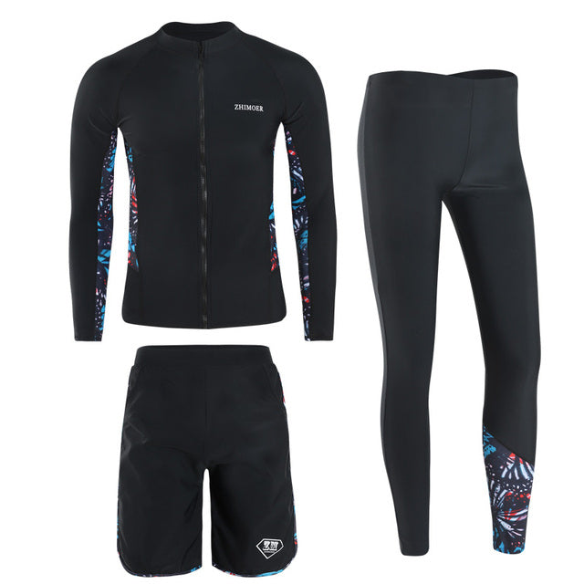 Long Sleeve Rash Guard Women Print 5 Pieces Swimsuit Zipper Swimwear Bathing Suits Surfing Pad Long Pant Couples Men 3 pieces