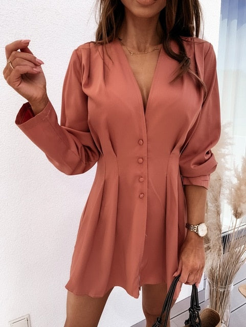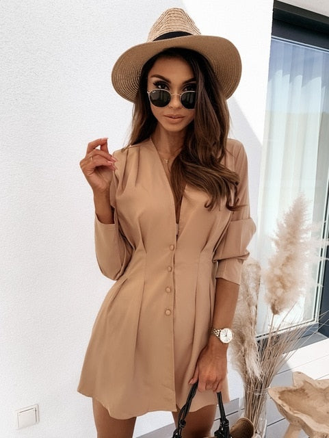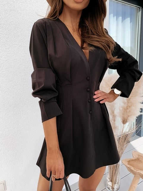 Long Sleeve Short Mini Dress A-line Office Ladies Dresses