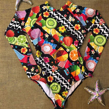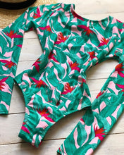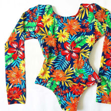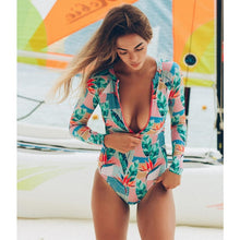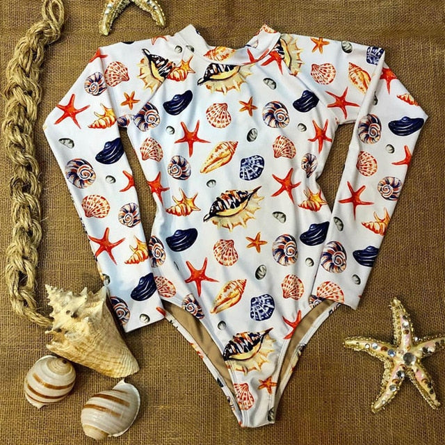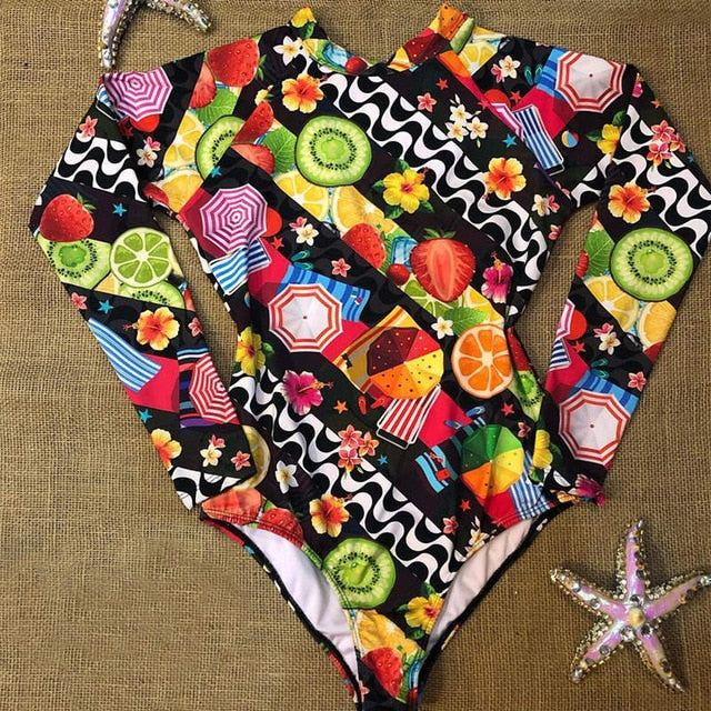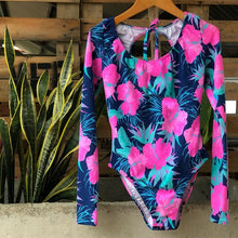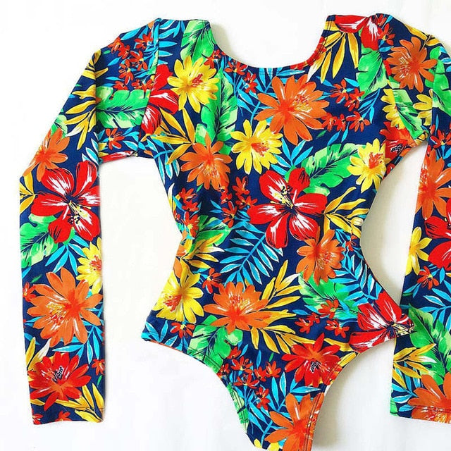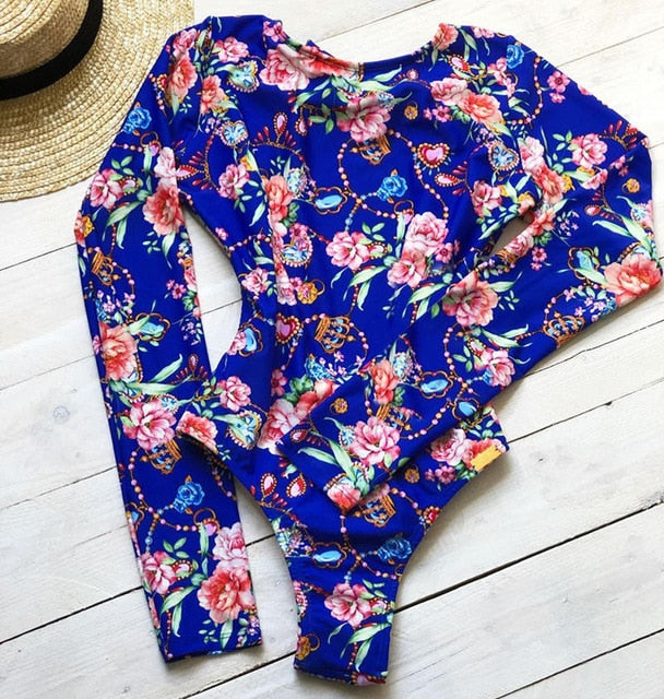 Long Sleeves Women One Piece Swimsuit Floral Swimwear