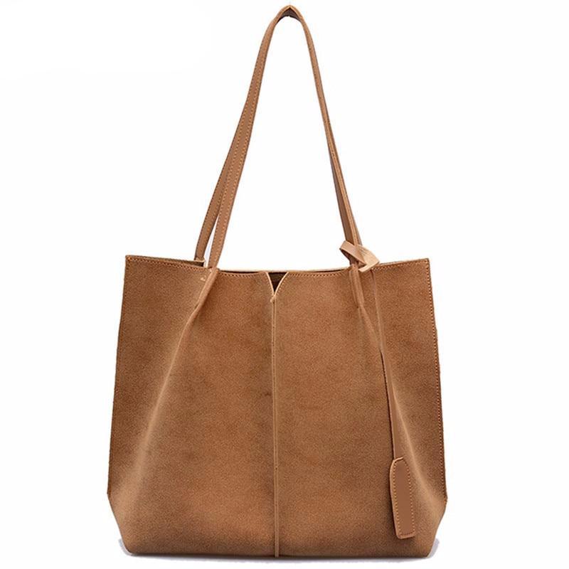 High Quality Women Suede Handbags Soft Leather Women Bag 2PCS Handbags Set Female Shoulder Bags Large Casual Tote Bags