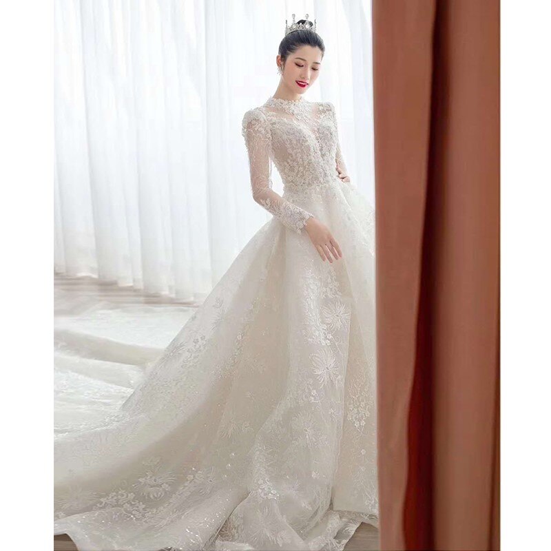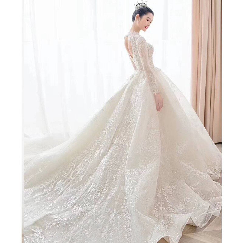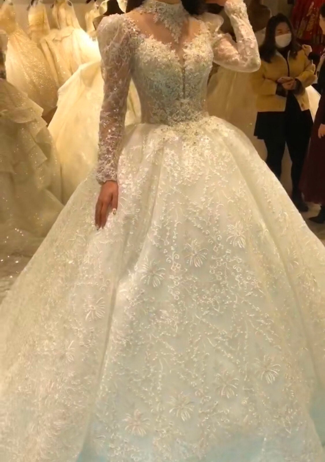 Luxurious Beaded America Ball Gown Long Sleeves Wedding Dresses