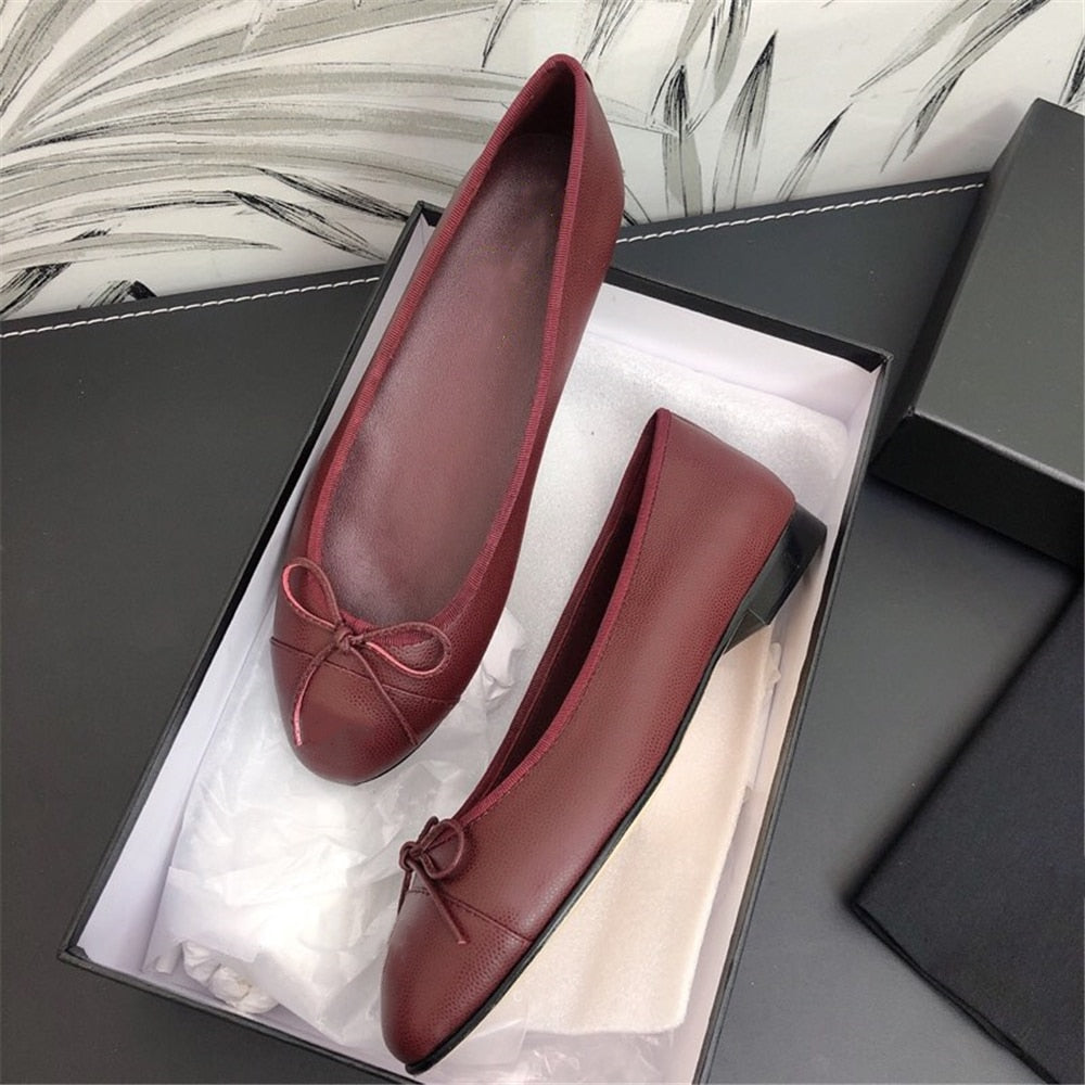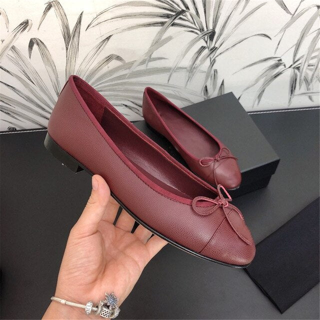 Luxury Brands Women's Shoes Comfort Round Toe Caviar Leather Women's Flats Butterfly-knot Bowtie Casual Shoes Ballet Flats 34-42