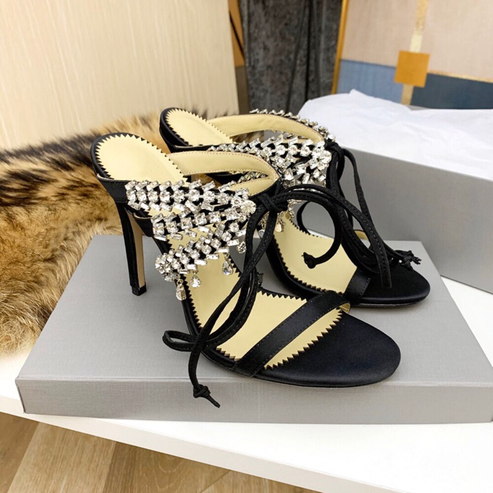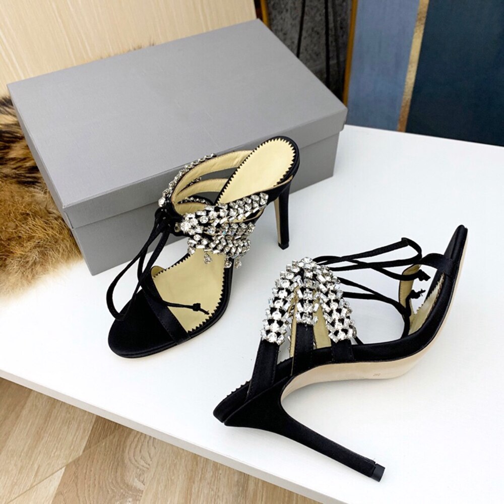 Luxury Design Women's Shoes Fashion Genuine Leather High Heels Pumps Crystal Straps Sandals For Woman Thin Heels Sandals Shoes