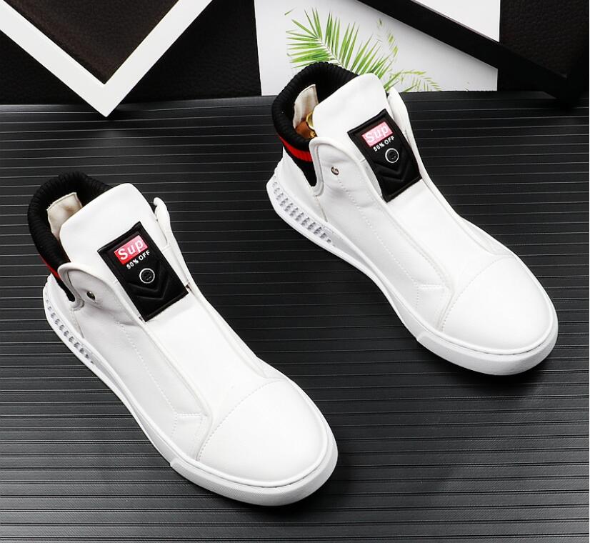 Luxury designer Men White Casual Shoes Med Round Toe British Man Trending Leisure Shoes Younger Flat Platform Street Shoe