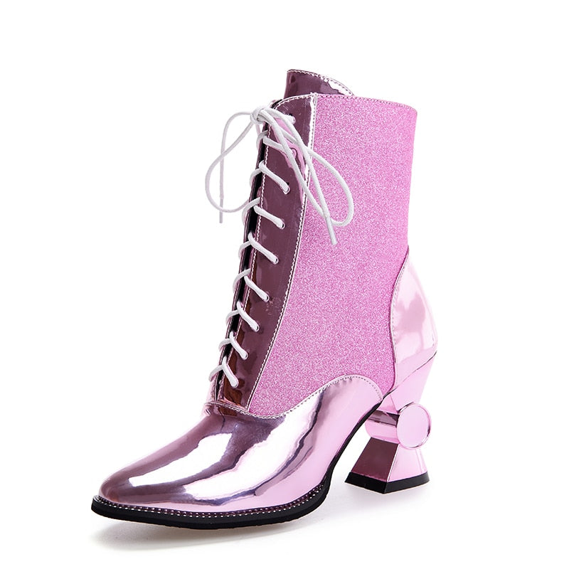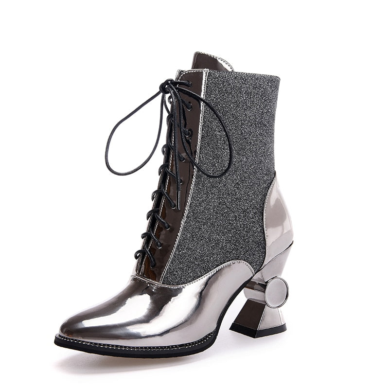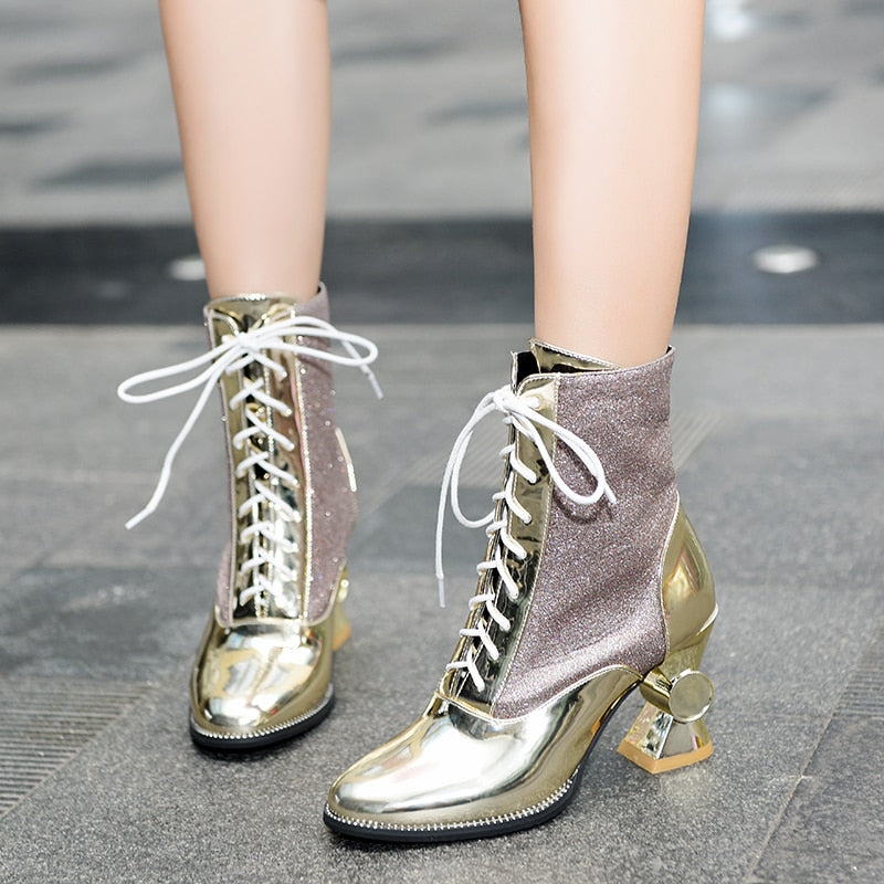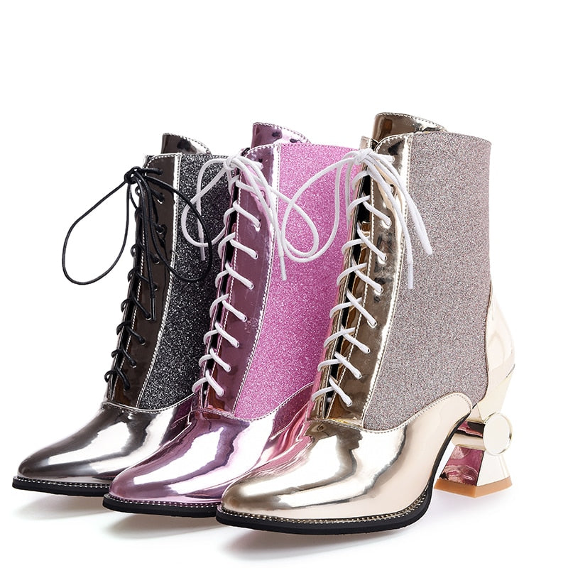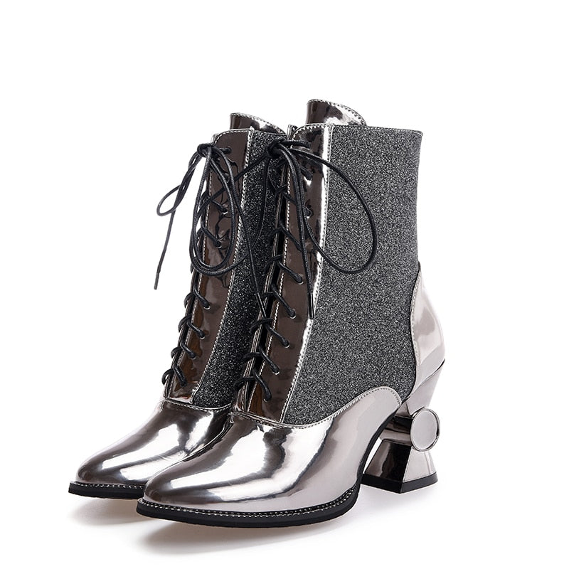winter women's shoes thick with high-heeled tube in the women's boots in Europe and America with patent leather wild